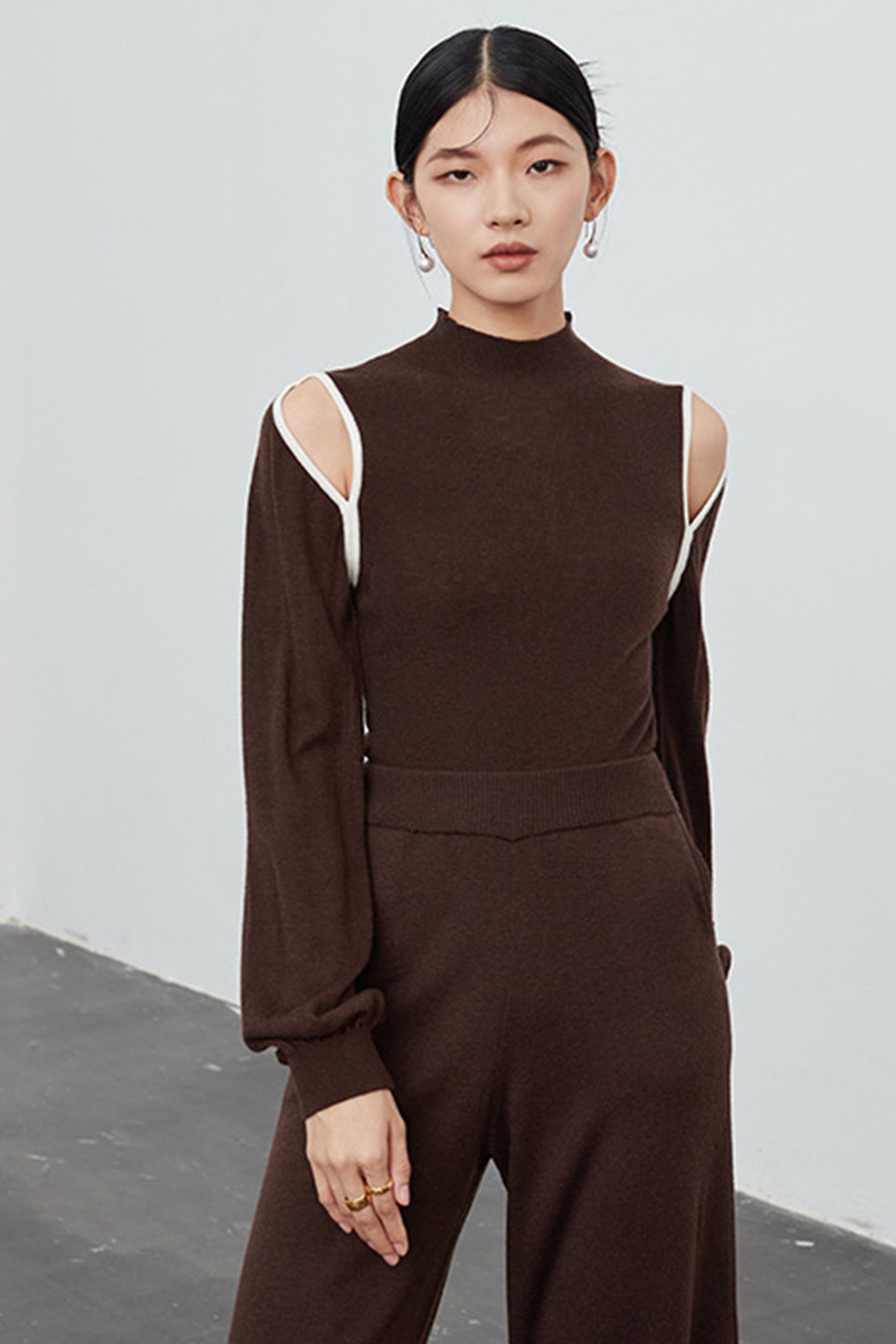 Off Shoulder Long Sleeve Wool Knitted Tops