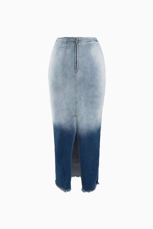 Increase quantity for Ombre Frayed Slit Denim Maxi Skirt