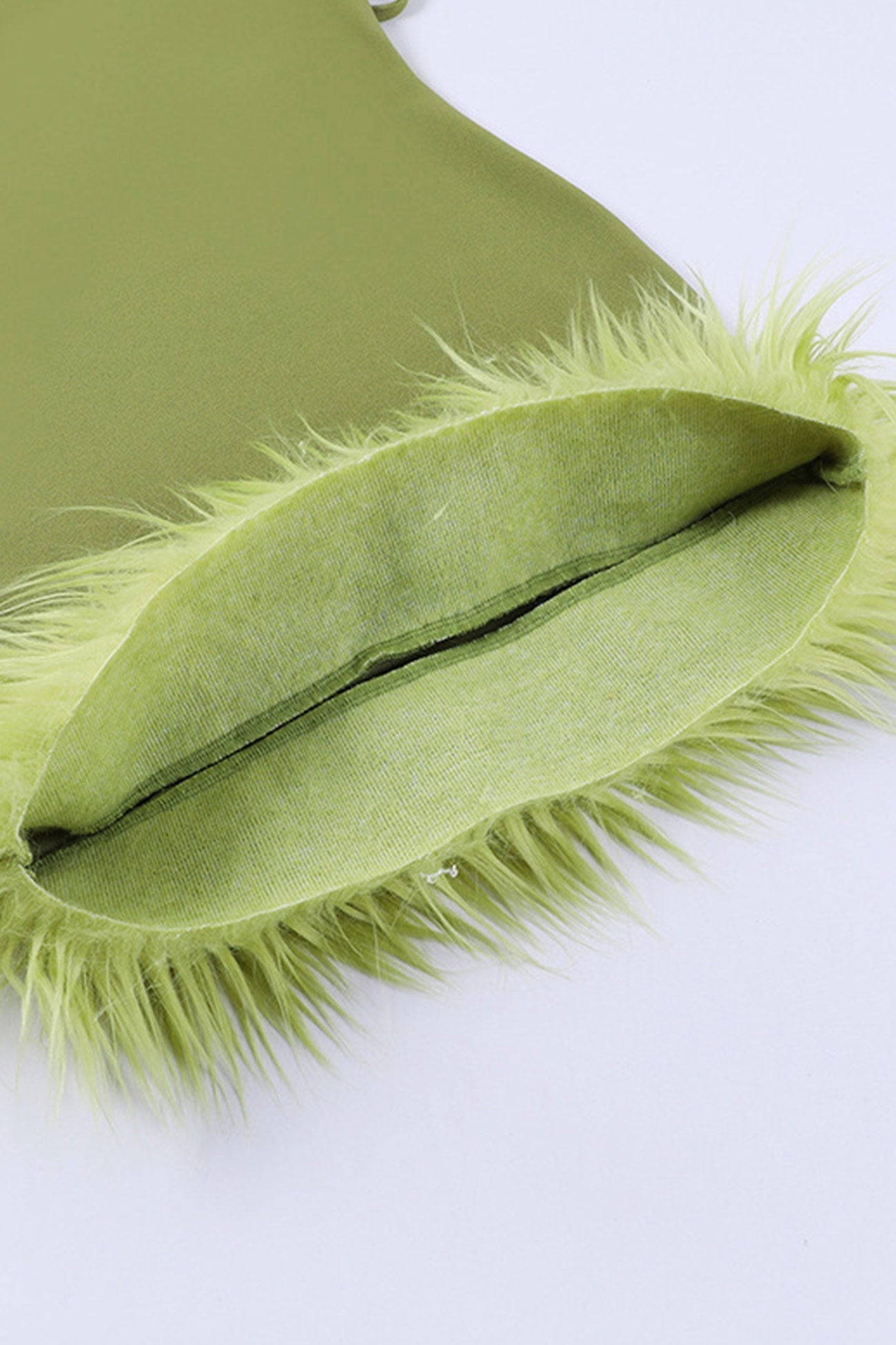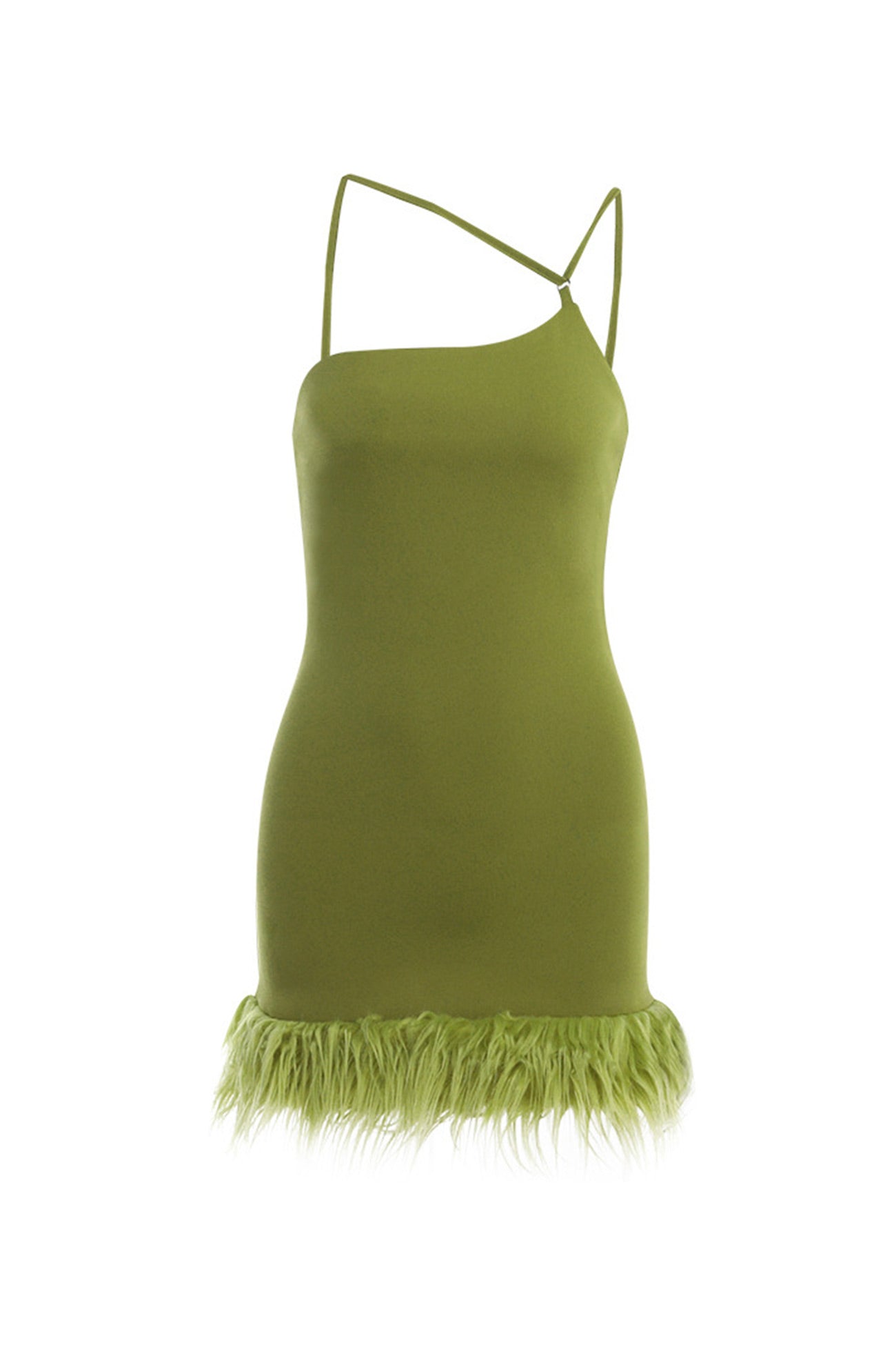 One Shoulder Irregular Fuzzy Hem Mini Dress