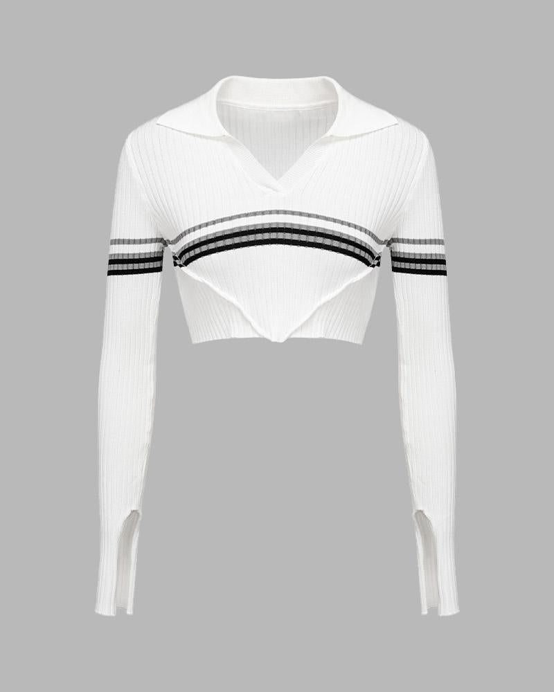 Details: Long-sleeve crop top with stripes design