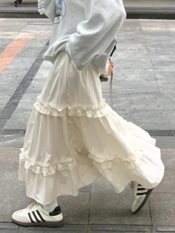 Increase quantity for Pleated Elastic Waist Fungus Splice Tiered Midi Skirt