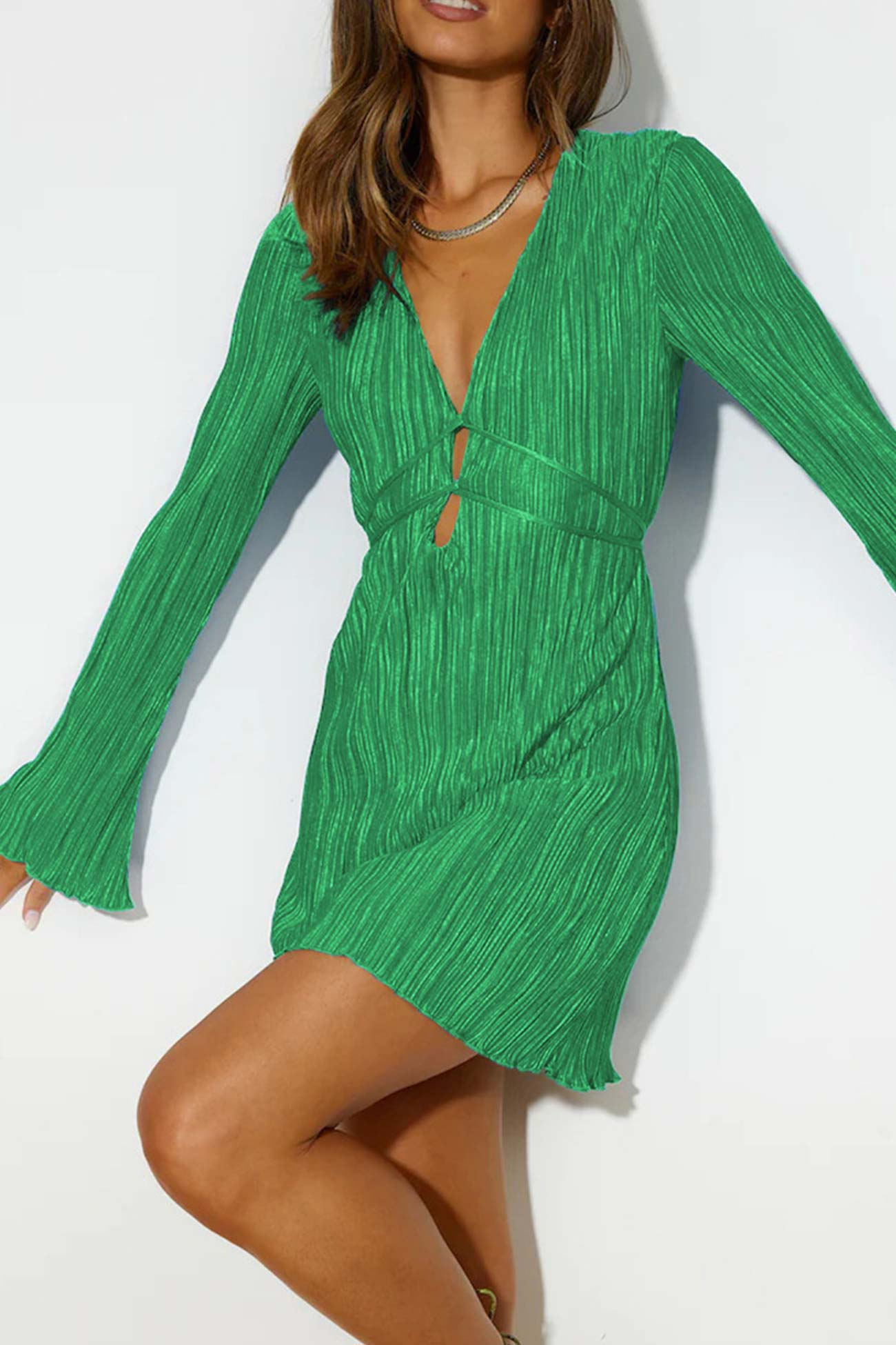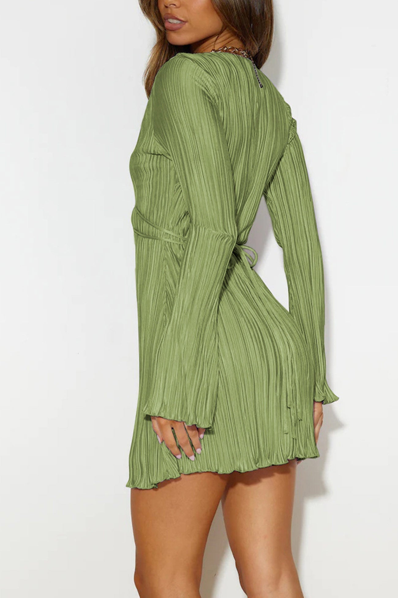Increase quantity for Pleated Flares Sleeve Tie-up Mini Dress