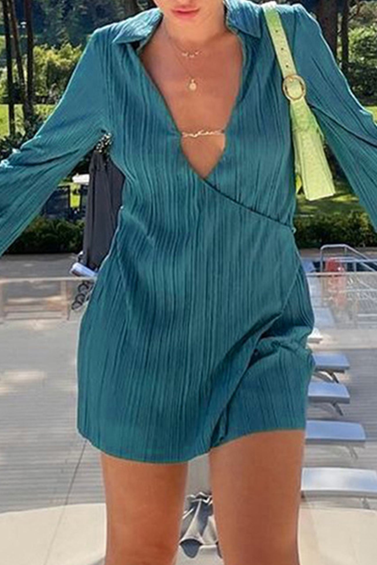 Decrease quantity for Pleated Lapel Low Cut Mini Dress