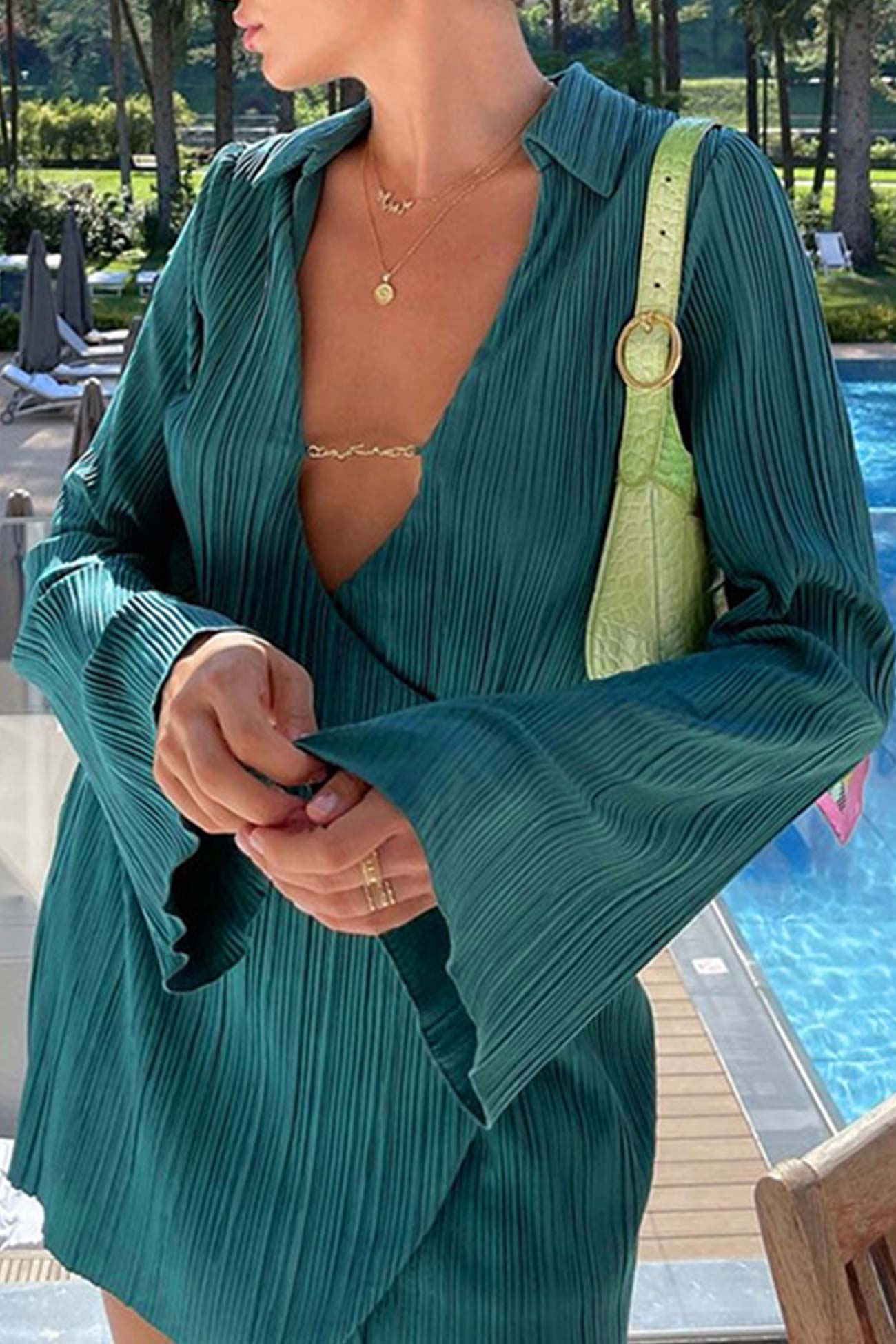 Increase quantity for Pleated Lapel Low Cut Mini Dress