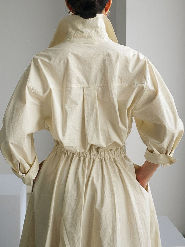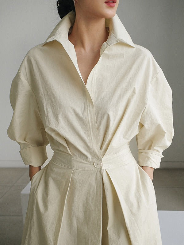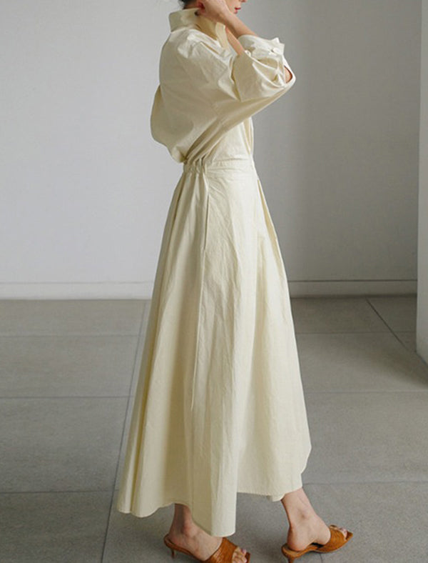 | Feature | Tied Waist . Pleated . Split-joint . Solid Color |