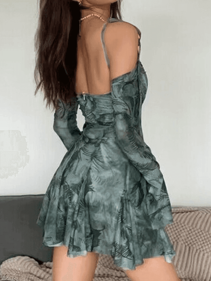 Elegant Trumpet Sleeves: The stylish trumpet sleeves give the dress a retro and elegant feel. adding a touch of sophistication to your outfit.