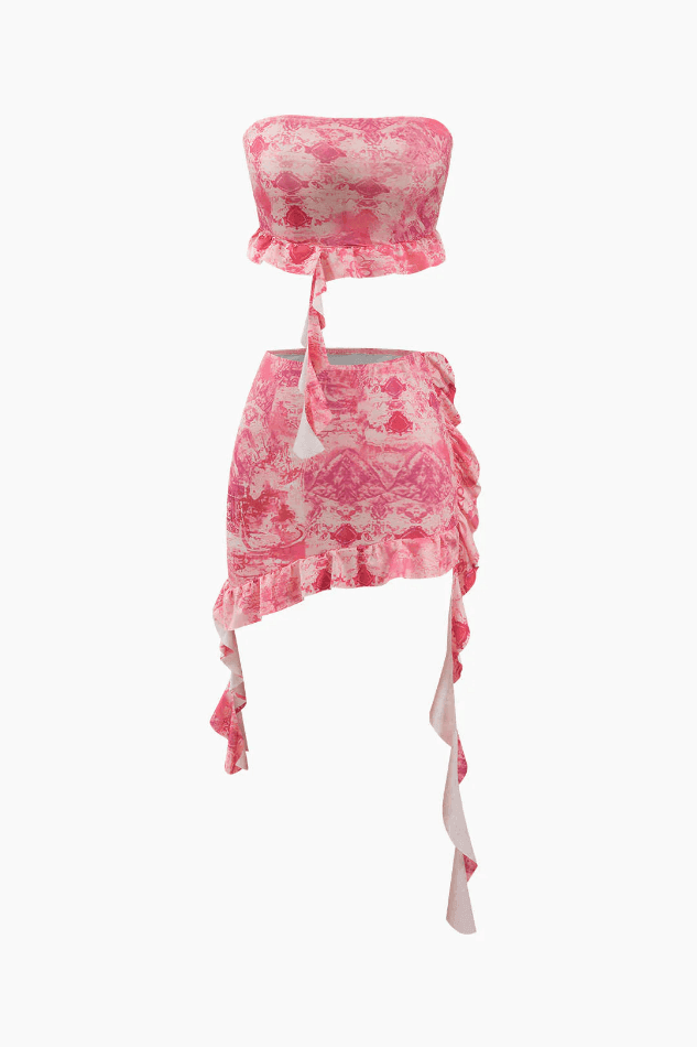 Decrease quantity for Printed Ruffle Tube Top And Asymmetric Mini Skirt Set