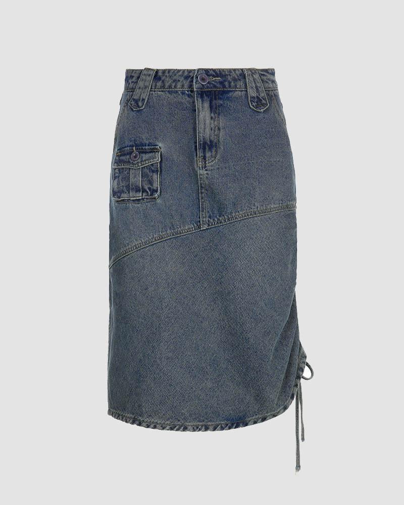 Details: Long denim jeans with side drawstring design