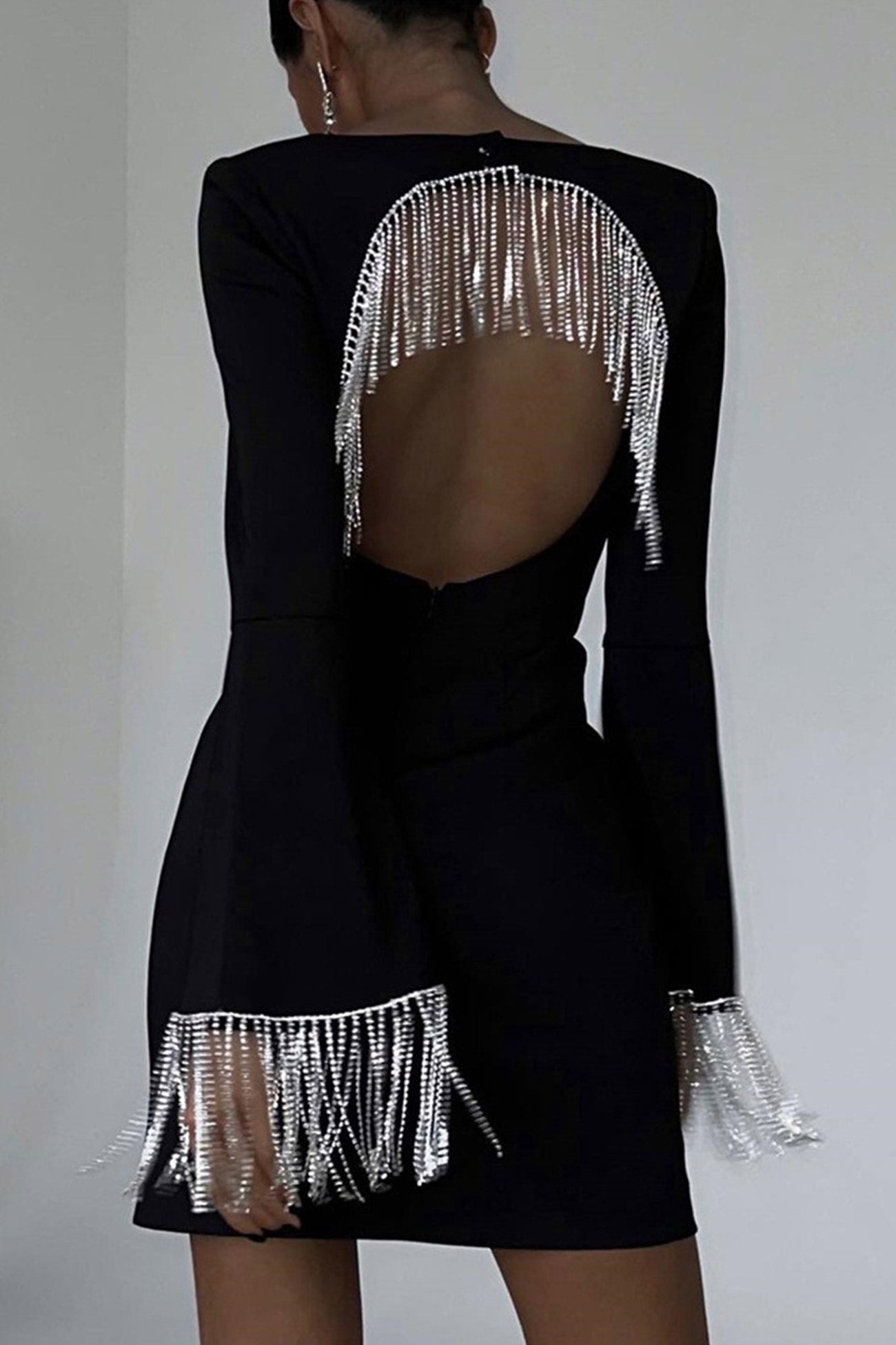 Increase quantity for Rhinestone Fringe Backless Mini Dress