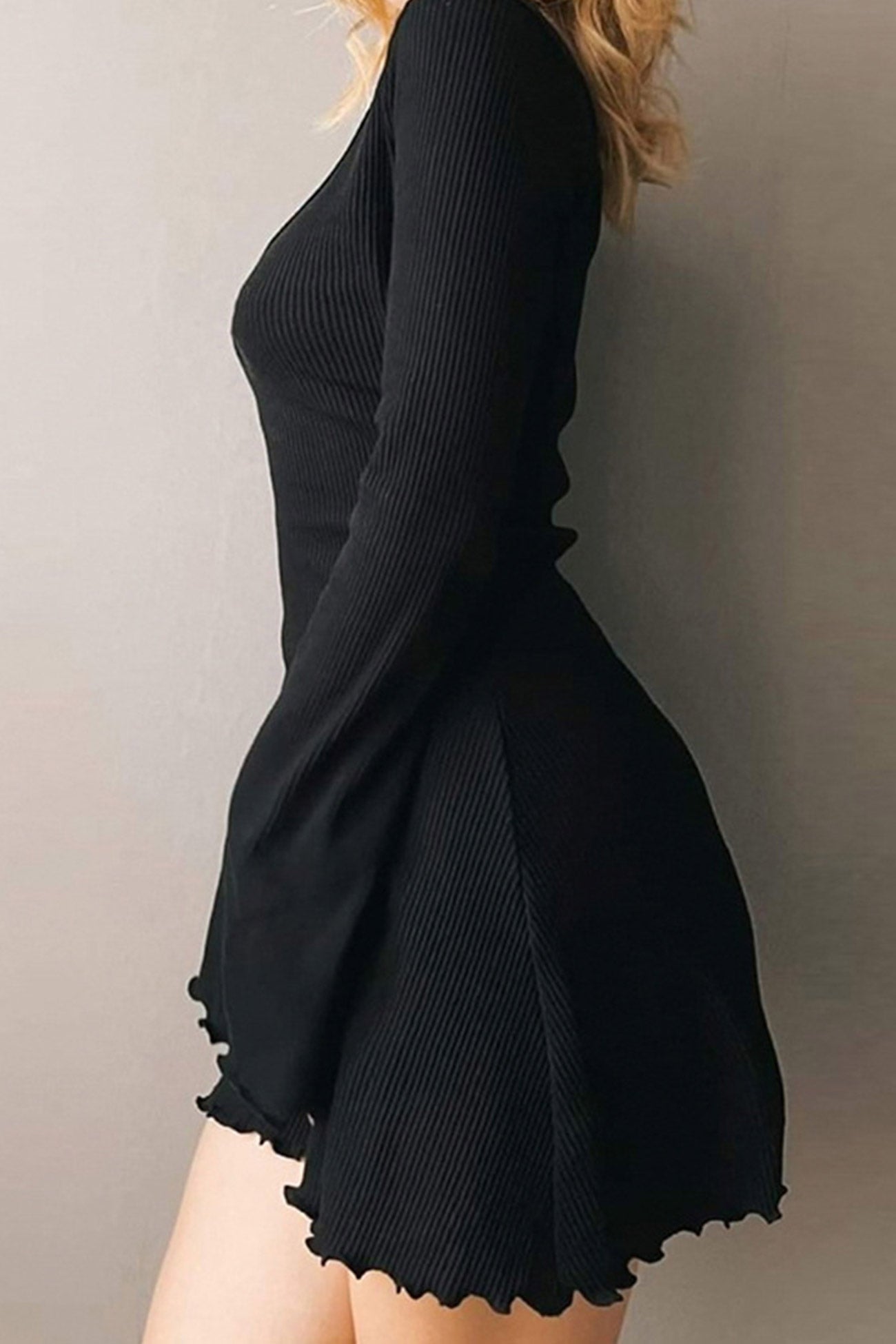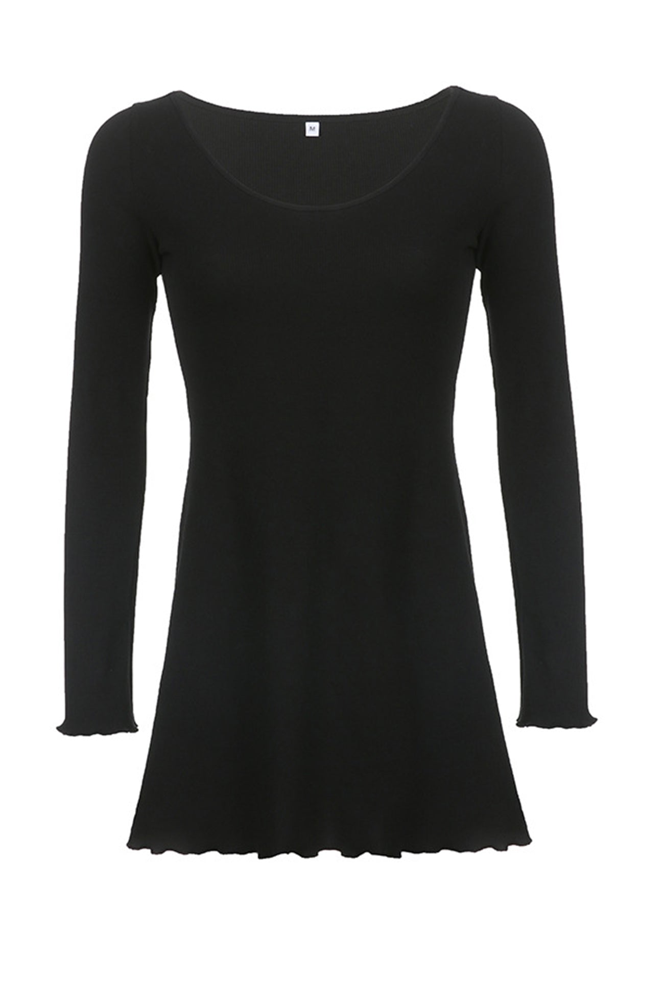 Increase quantity for Round Neck Long Sleeve Lacework Hem Dress