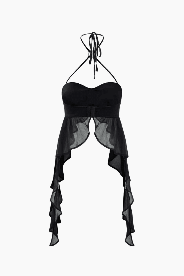 Ruched Ruffle Halter Neck Top