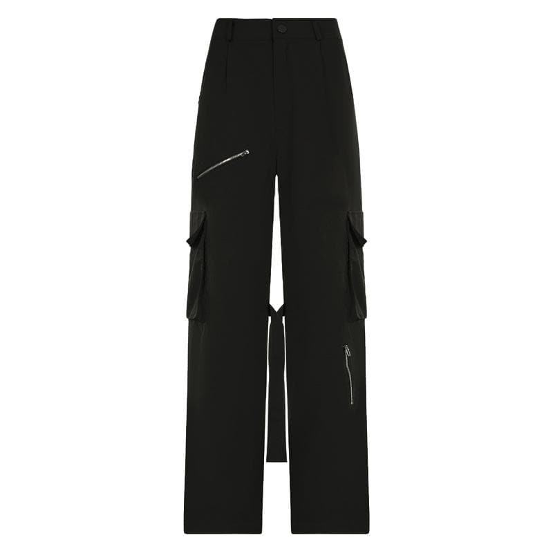 Decrease quantity for Self tie zip-up high rise solid cargo pocket baggy straight leg pant