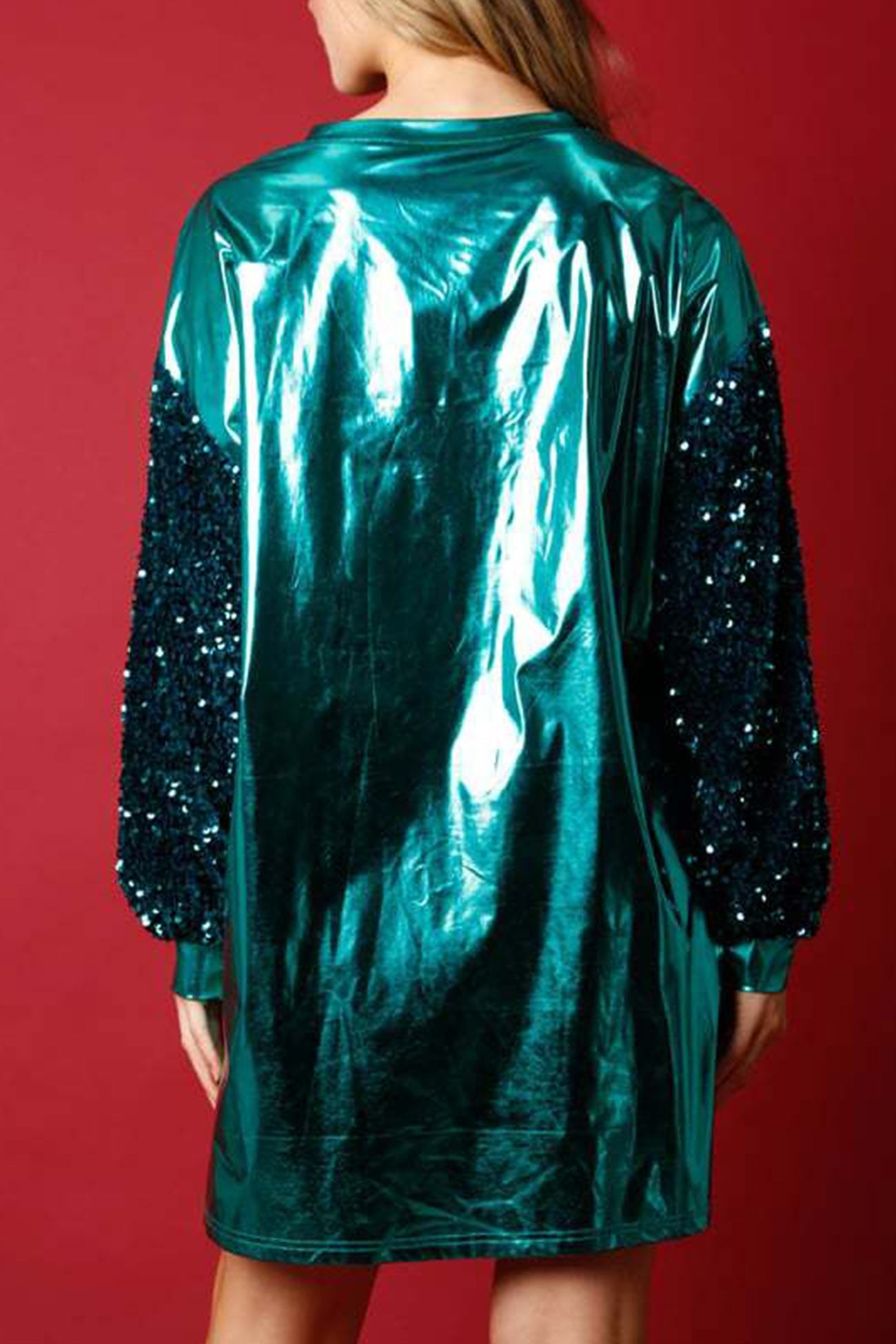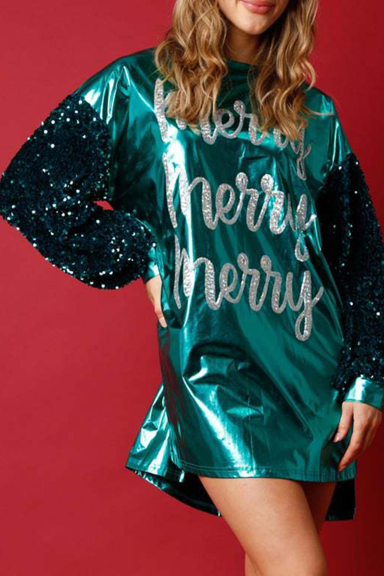 Increase quantity for Sequin Sleeve Letter Graphic Glossy Dress