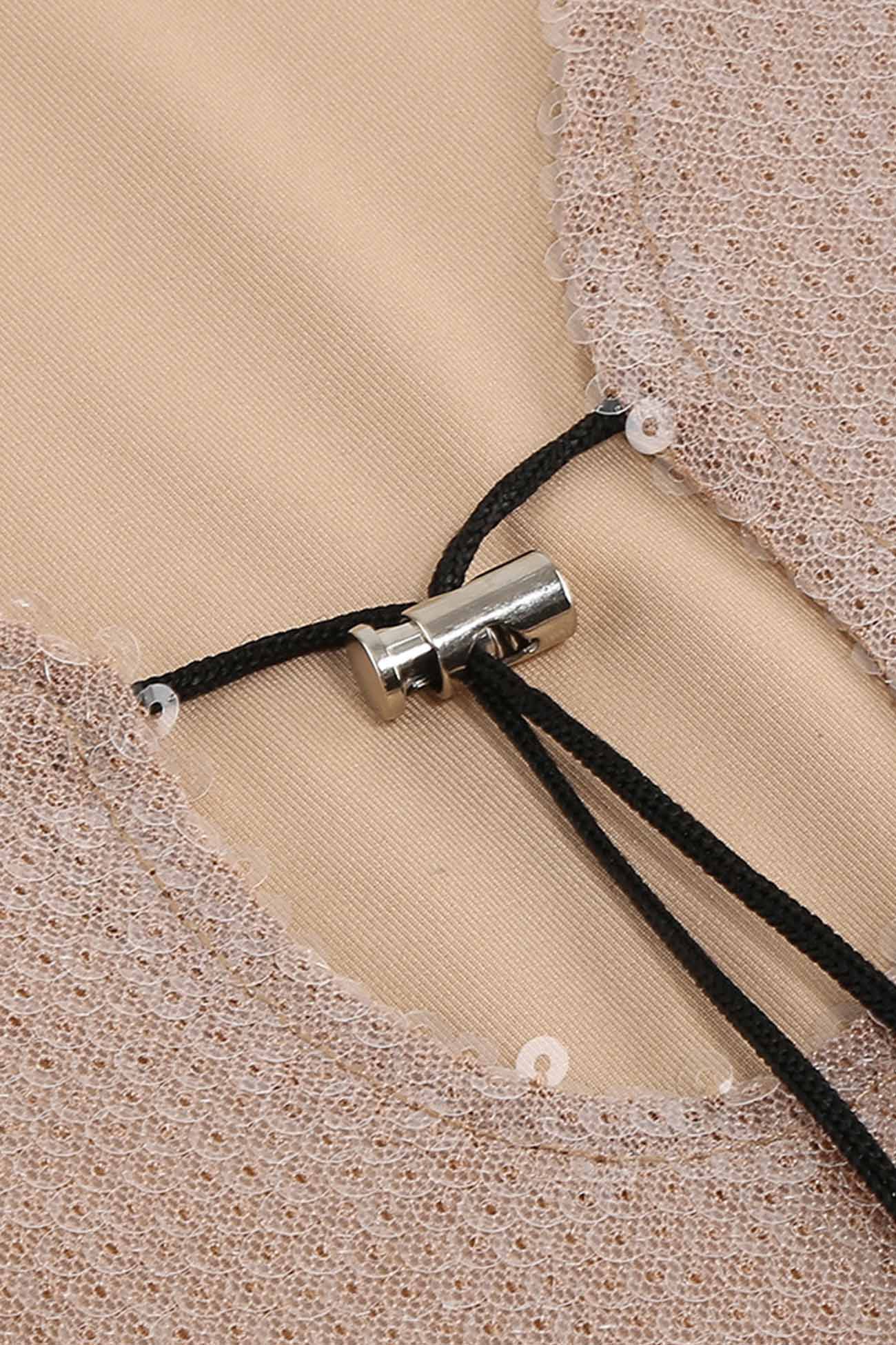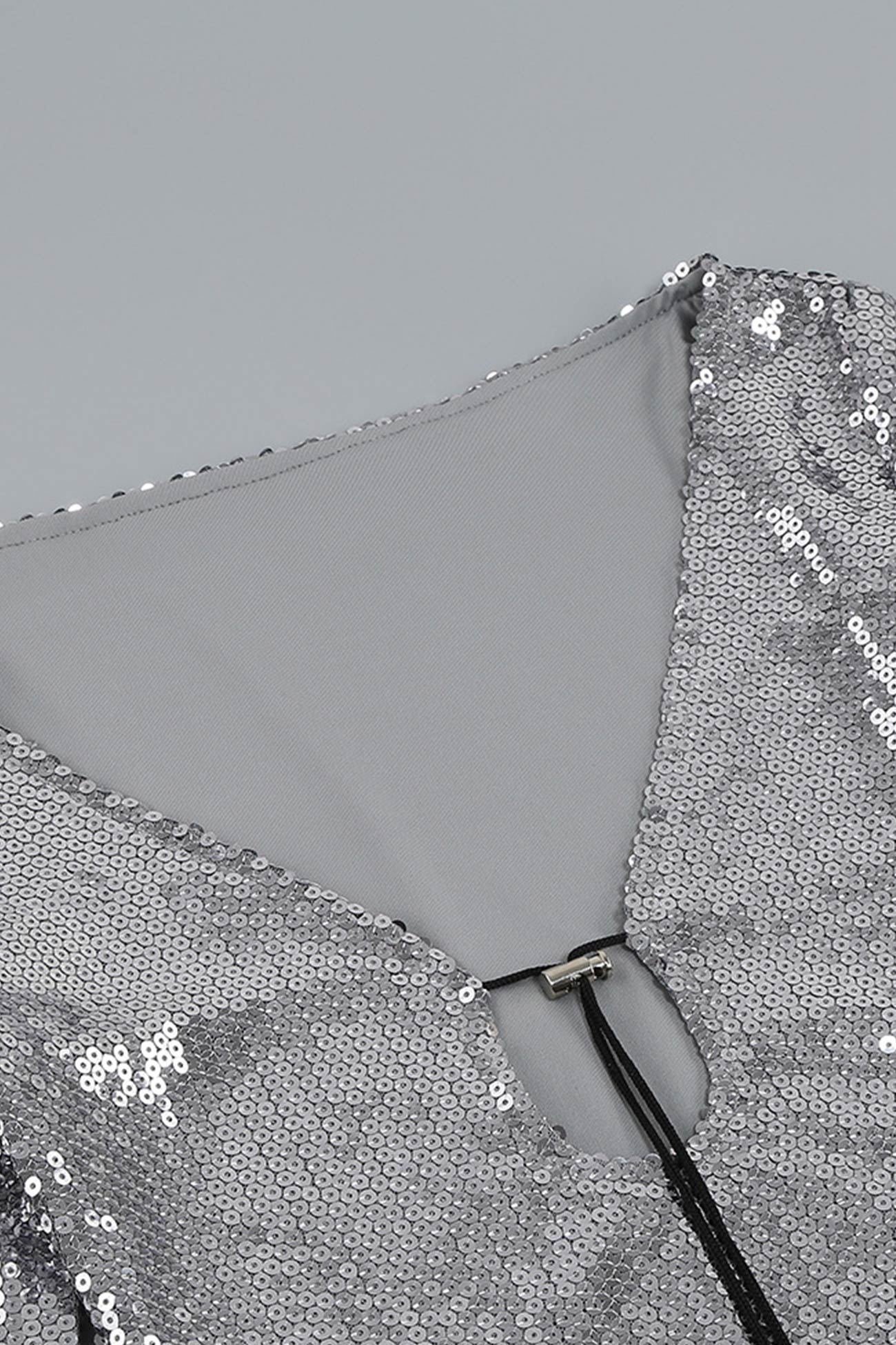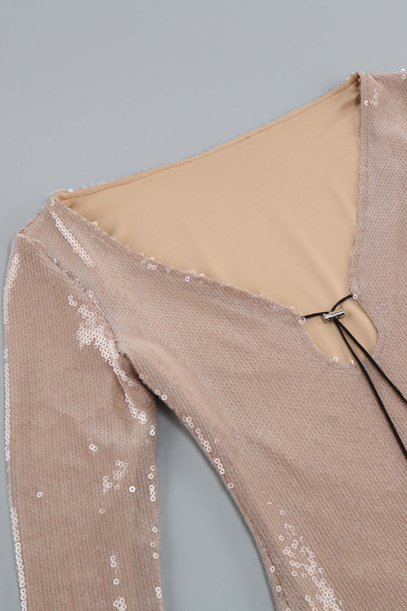 Sequins V Neck Flares Sleeve Pack Hip Dress