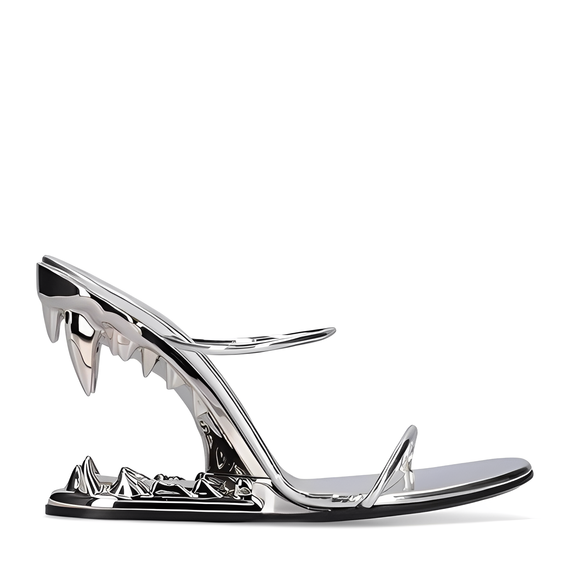 Jump straight into party season. Metallic 3'' heeled sandals featuring silver-tone. PU leather. open toe. slingback strap. high block heel and slip-on style.