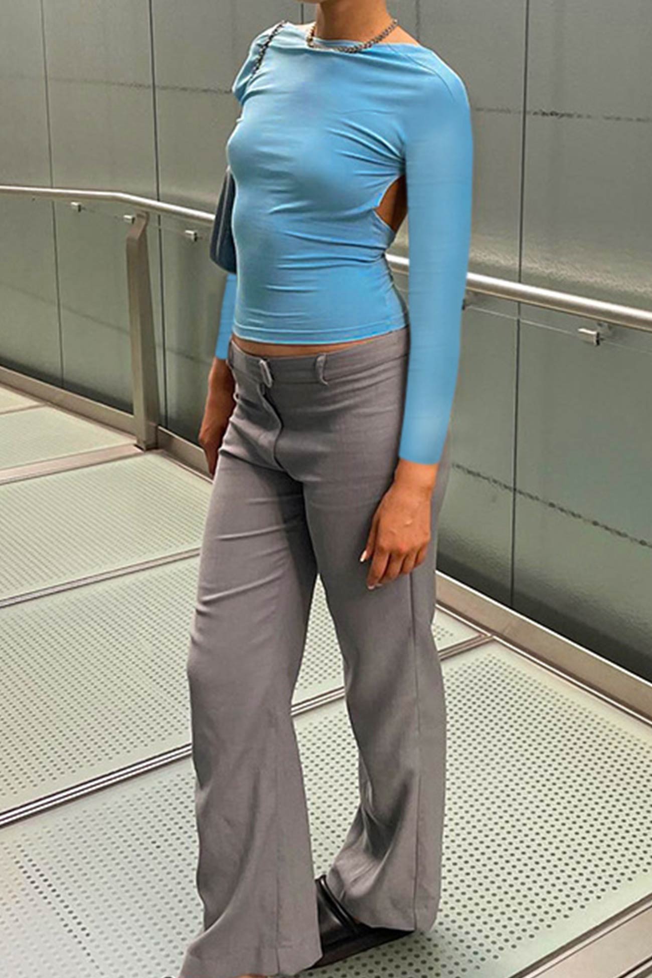 Decrease quantity for Solid Backless Long Sleeve Tops