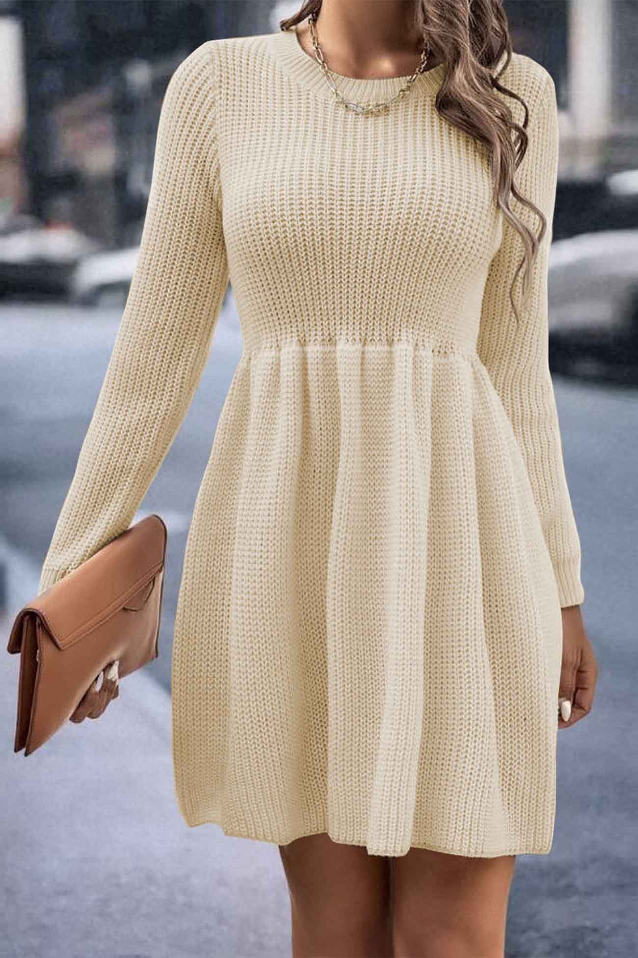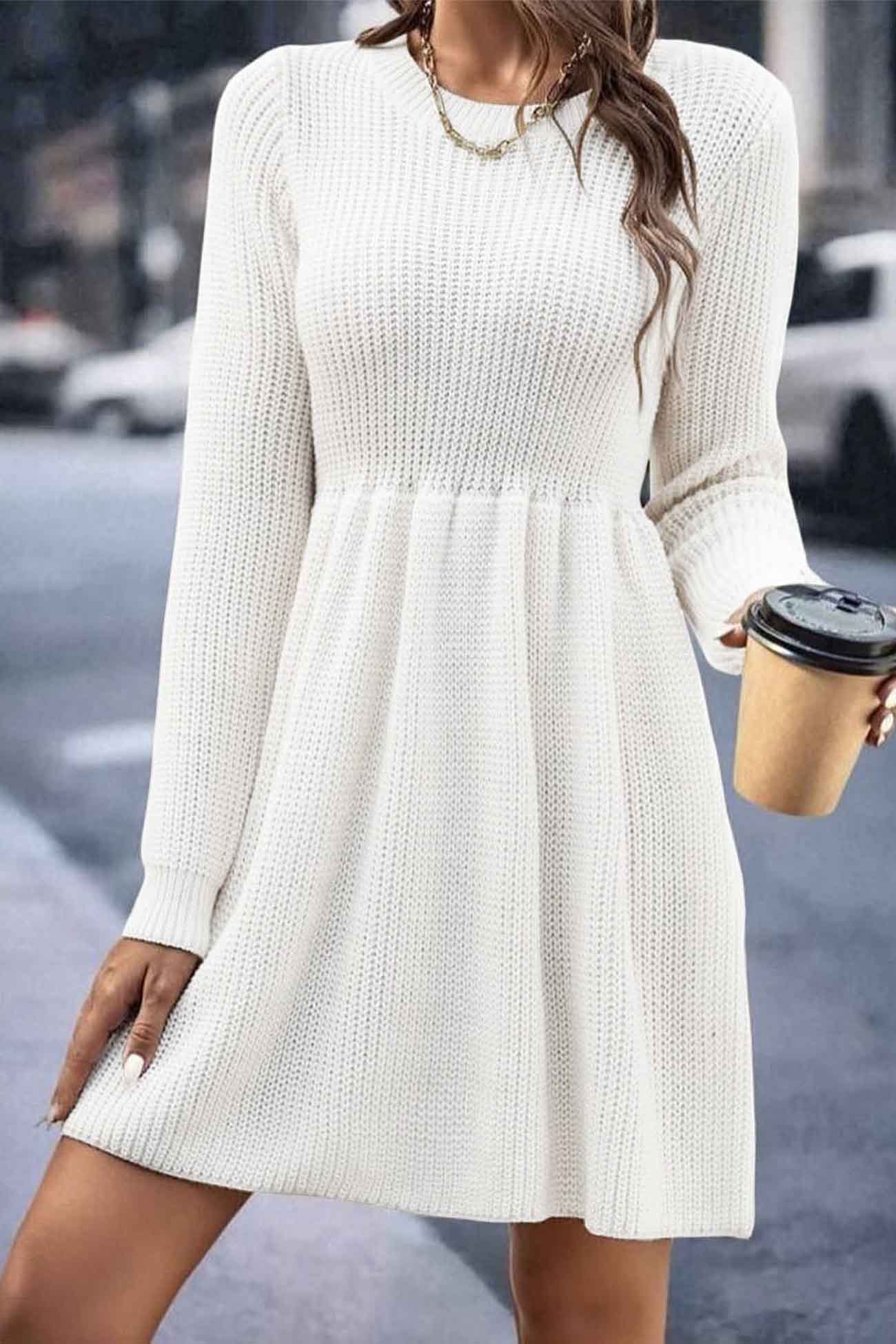 Decrease quantity for Solid Color Shirring Long Sleeve Knitted Dress