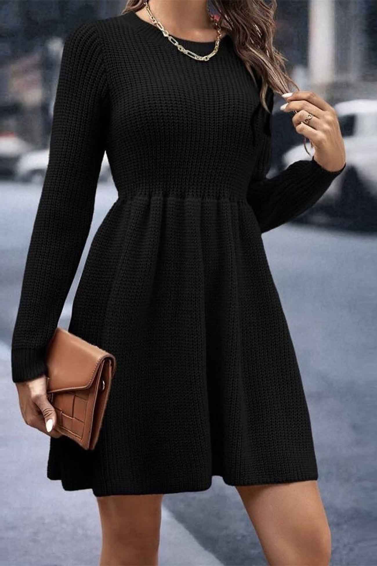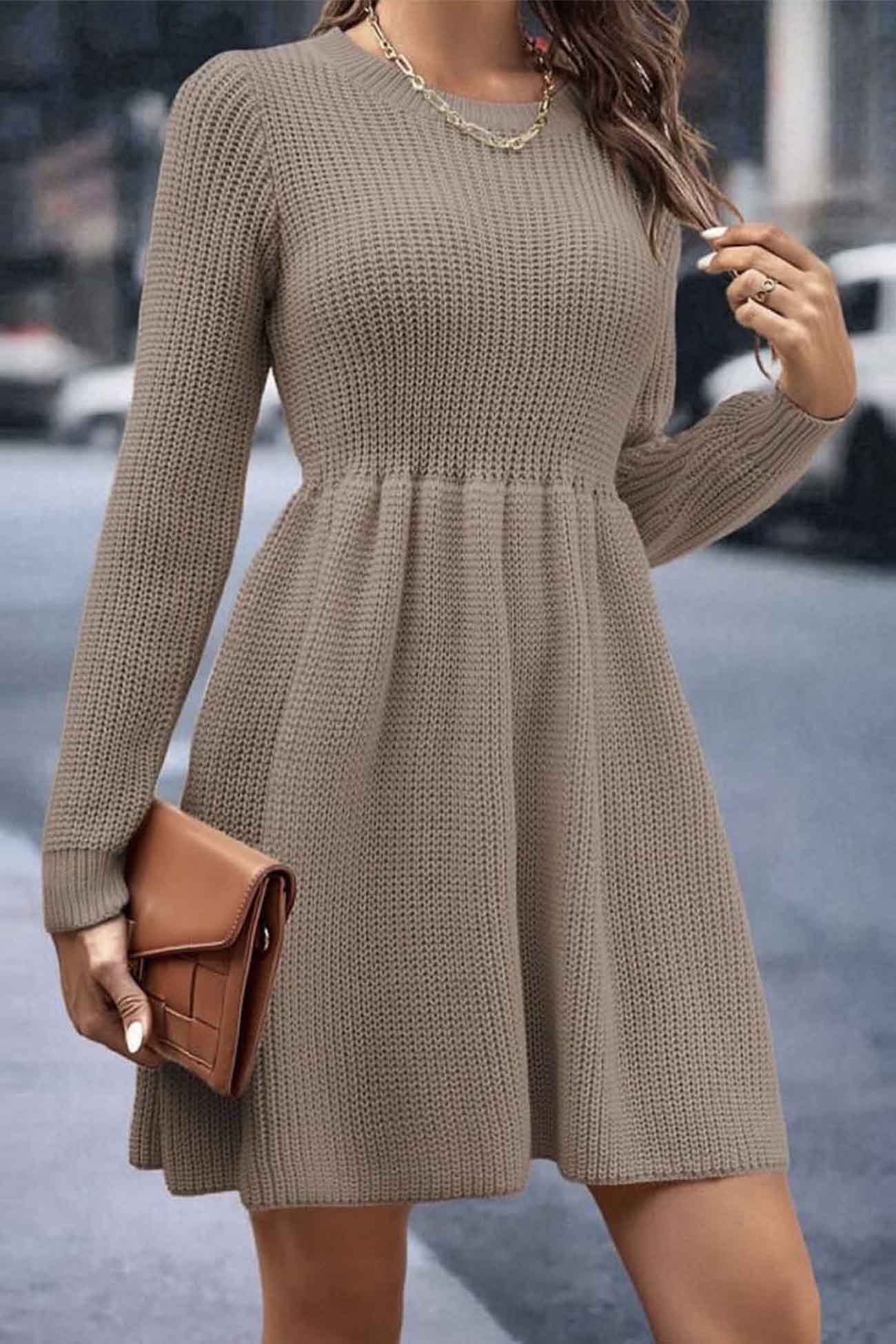 Increase quantity for Solid Color Shirring Long Sleeve Knitted Dress