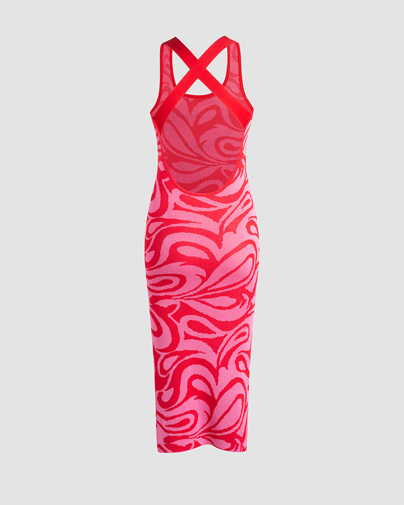 Details: Knitted longdress with cross-back design and watermarble pattern