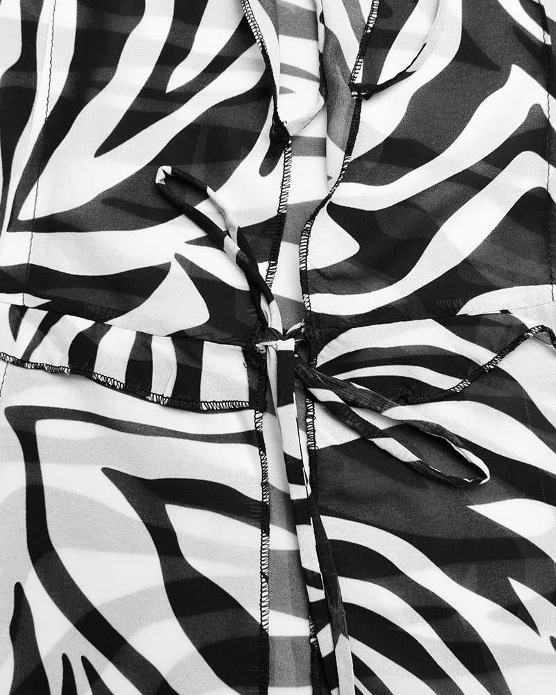 Details: Long-sleeve Zebra print outerwear with front ribbon design