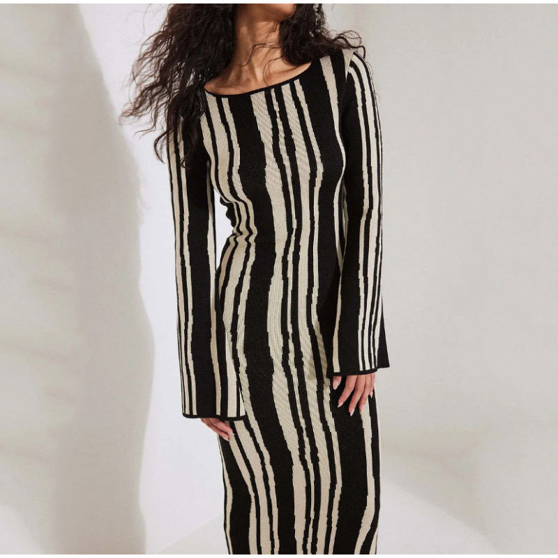 Bring sophistication and style to your wardrobe with our New Wave Knitted Maxi Dress. Crafted with an elegant cut-out design. flowy flare long sleeves and delicate knitted detailing. you will make a stunning statement in this timeless piece. With its luxurious feel and timeless style. this dress is the perfect addition to your wardrobe.