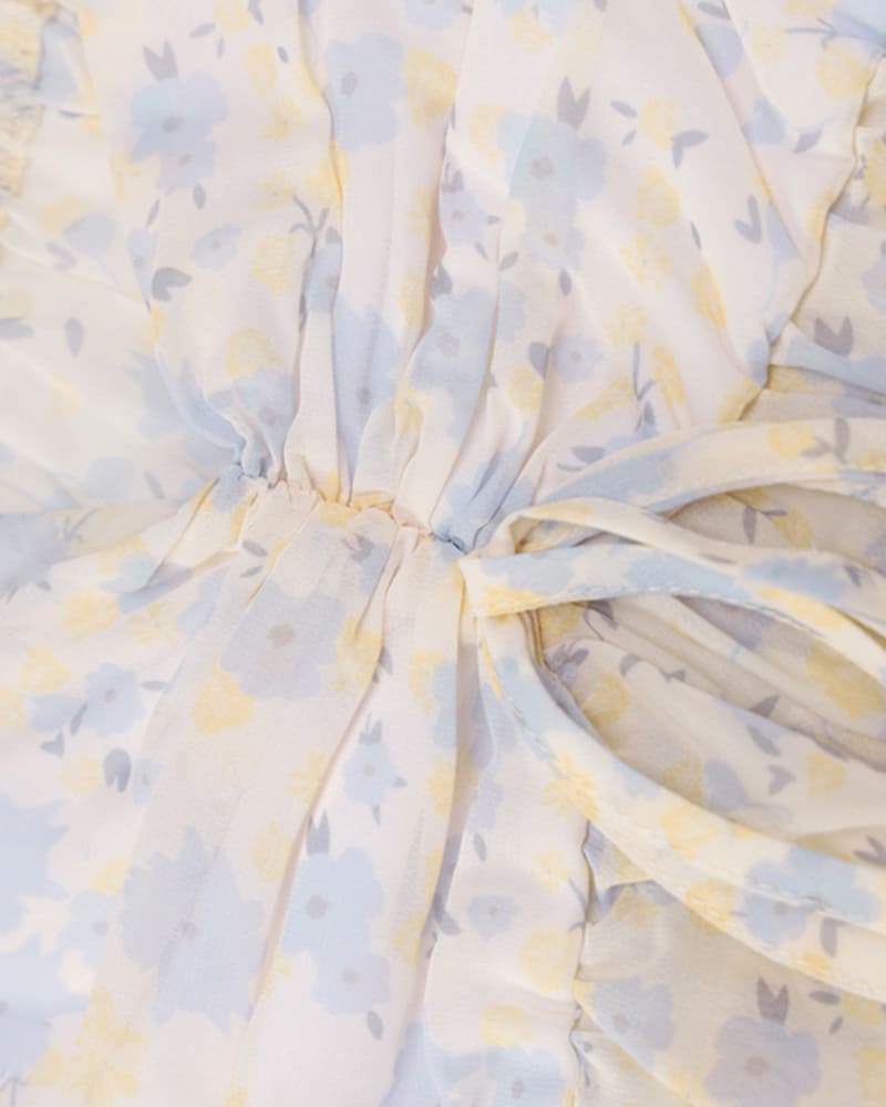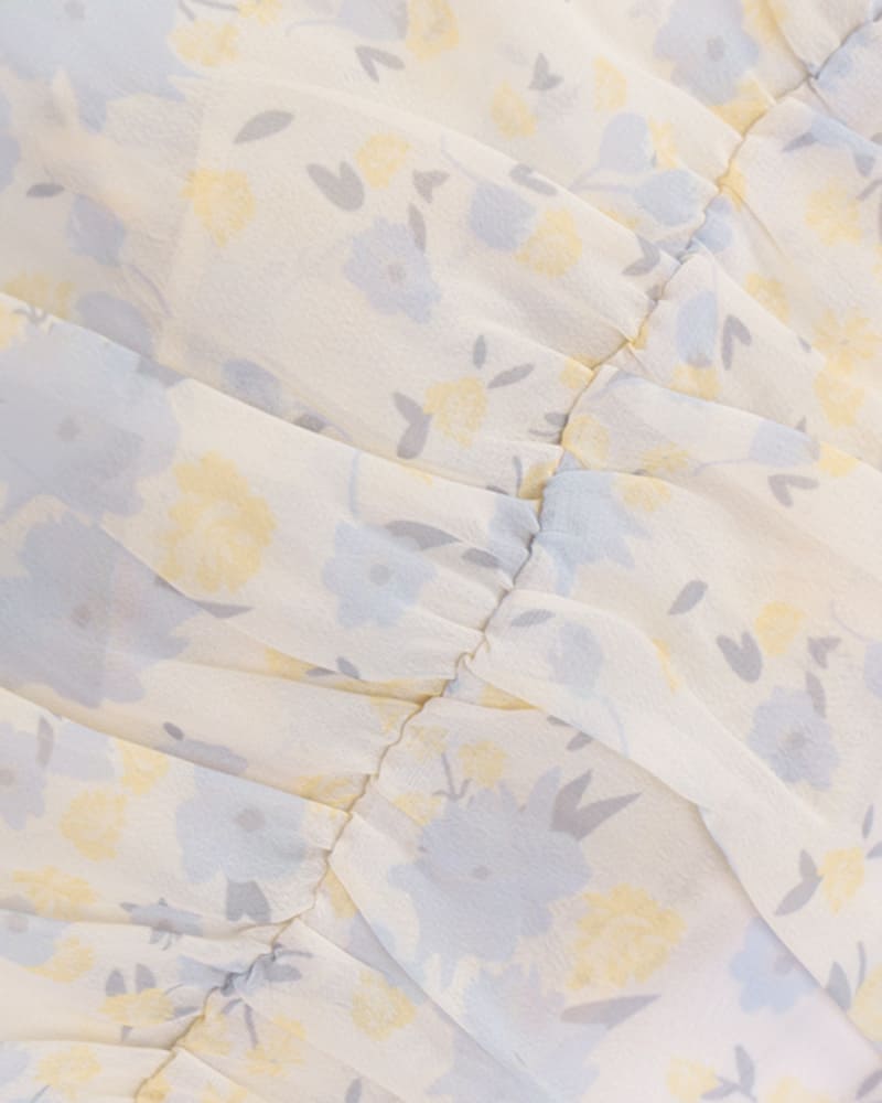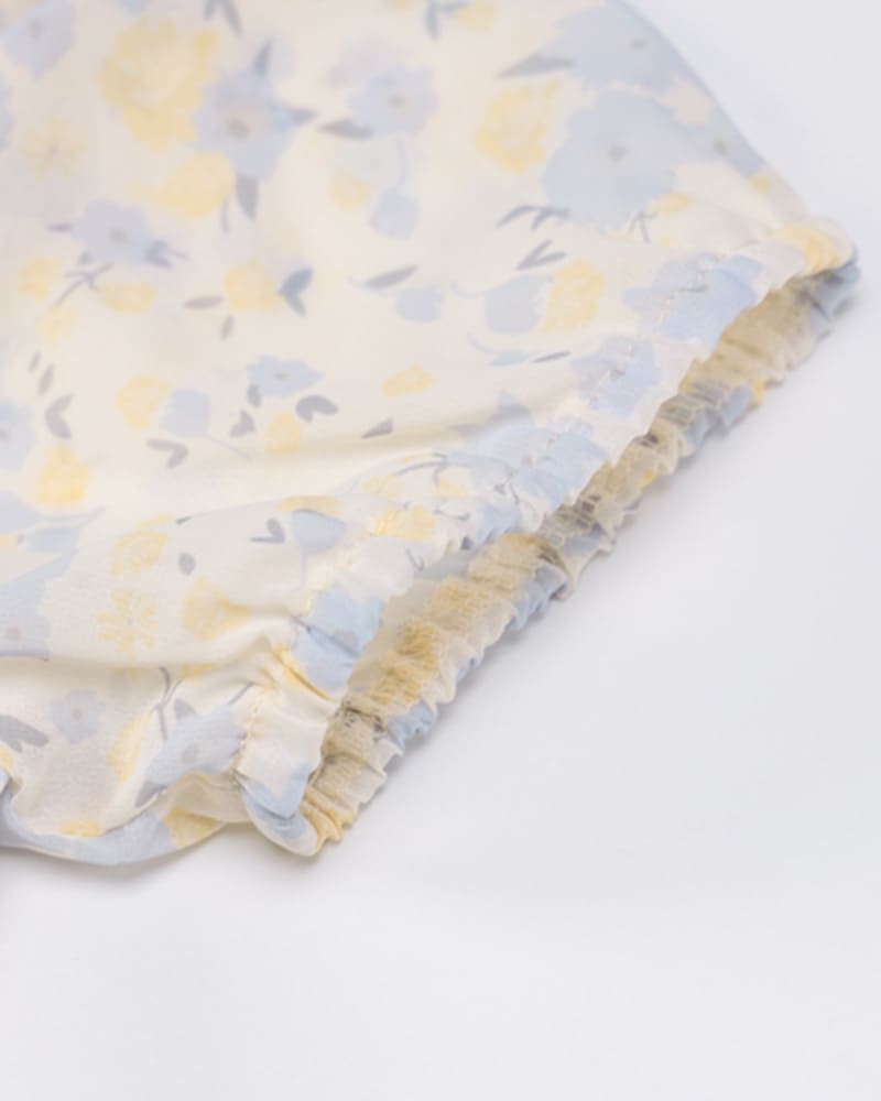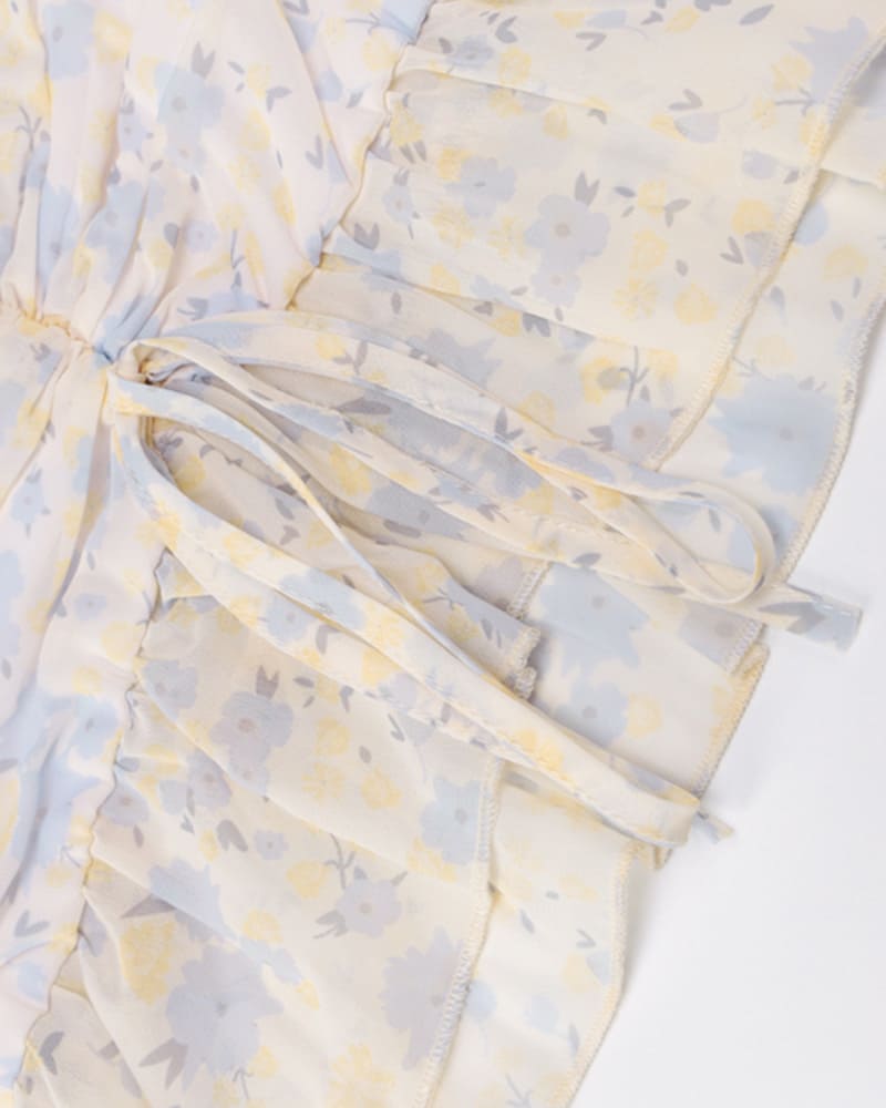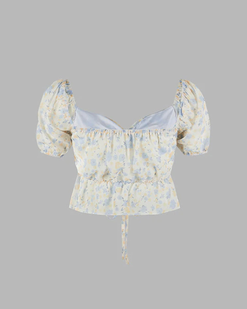 Details: Crop top with ditsy floral prints. ribbon design and puff short sleeves