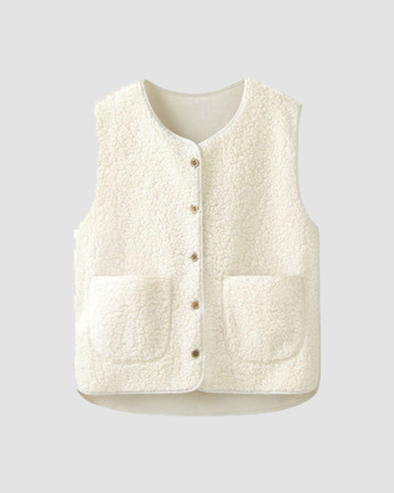 Details:K-Pop-inspired Teddy Long Vest with Pocket