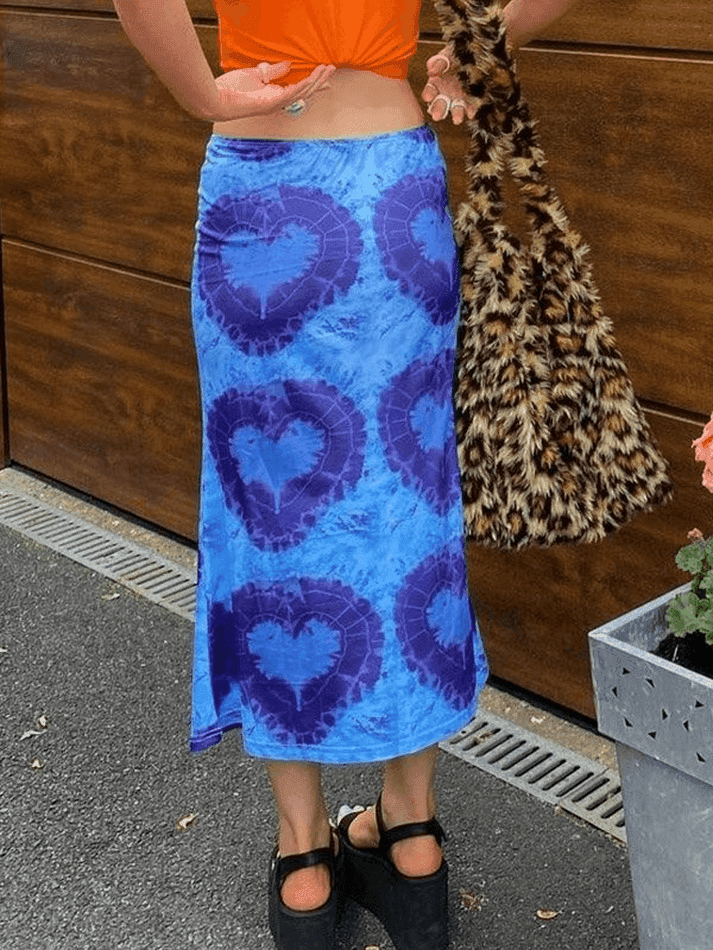 Increase quantity for Tie-Dye Heart Wrap Midi Skirt