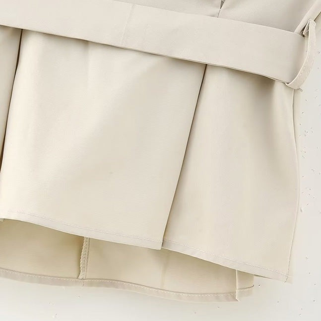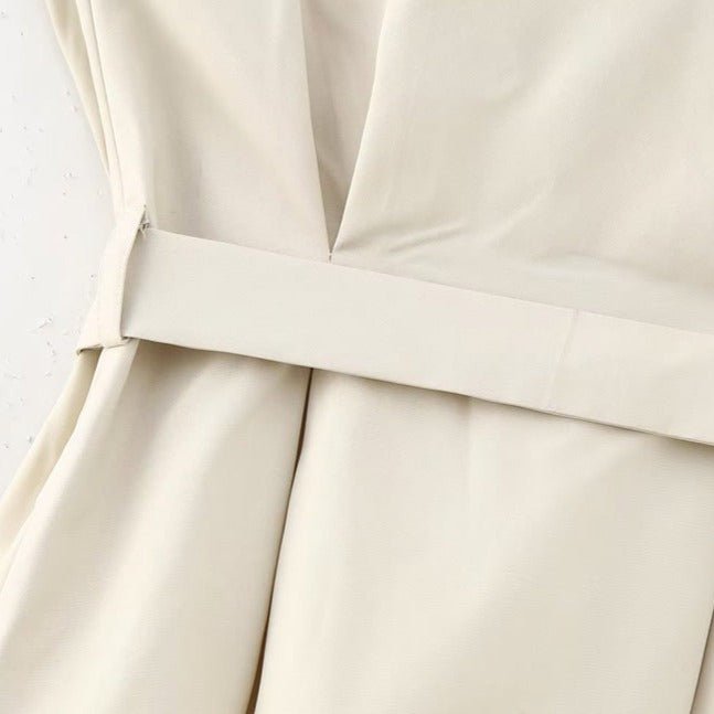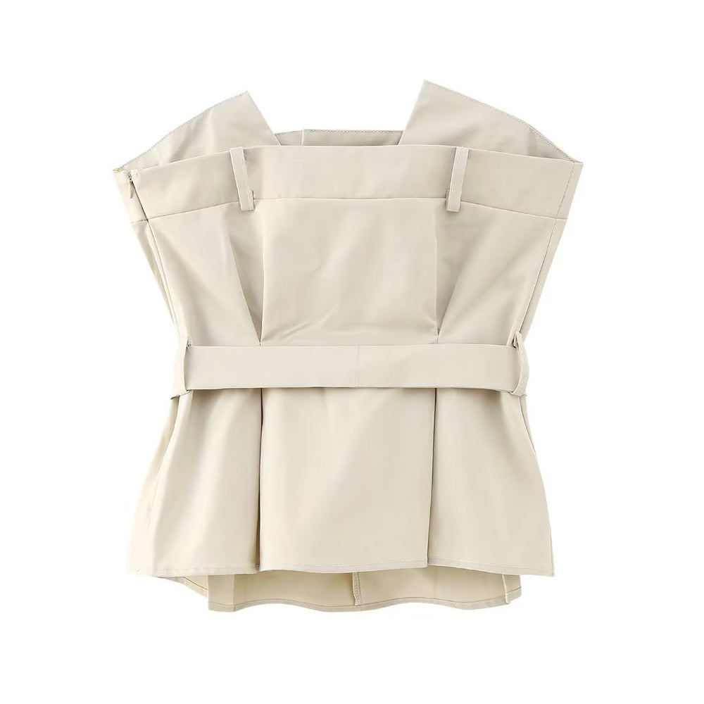 This timeless top features a straight neck. a self belt with a square brown buckle. and a hidden inseam closure. The top's super soft and lightweight fabric makes it a perfect option for casual everyday wear.