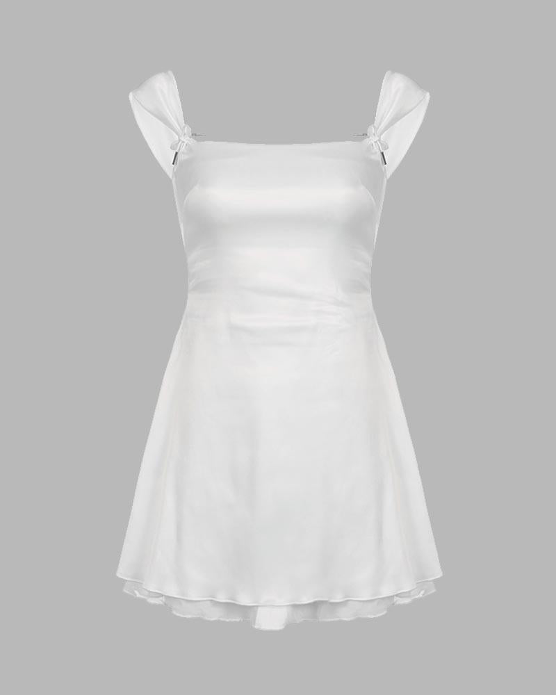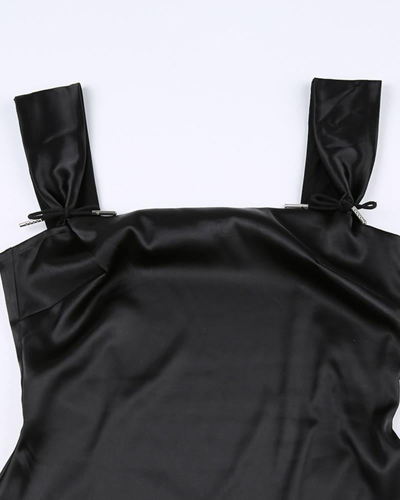 Details: Satin-fabric mini dress with shoulder straps design