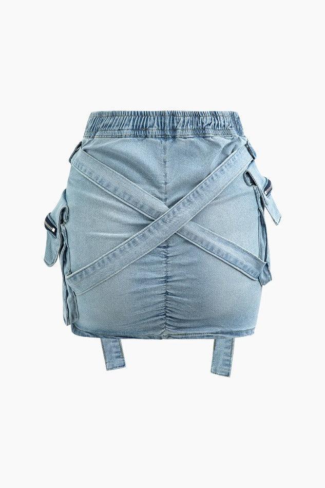 V-waist Buckle Flap Pocket Denim Cargo Skirt
