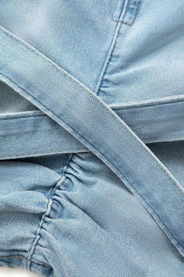 Increase quantity for V-waist Buckle Flap Pocket Denim Cargo Skirt