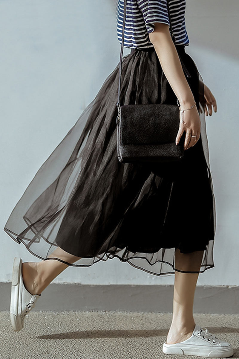 This skirt is super light and soft. more importantly. the color would change according to the sunlight. If you're an art girl. this would be your perfect choice in the early fall even in summer. The pleat design mix with mesh sense. like a fairy in the forest. isn't it?