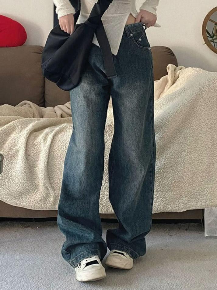 Versatility: The vintage dark blue denim color of these jeans makes them a versatile addition to any wardrobe. easily paired with a variety of top styles and colors.