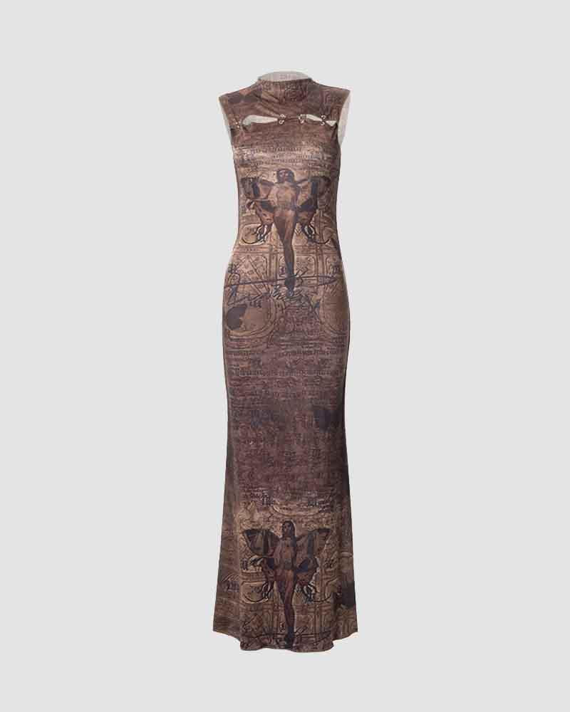 Details: Maxi dress with sleeveless design and vintage pattern print