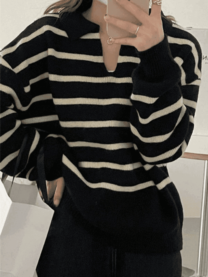 Style: Casual/Street/Vintage/Sweet/Preppy Fabric Content: Polyester. Spandex Fit Type: Loose fit Neckline: Polo Neck Sleeve Length: Long Sleeve Description: Features an open polo-neck style. with ribbed trims and drop shoulders design.