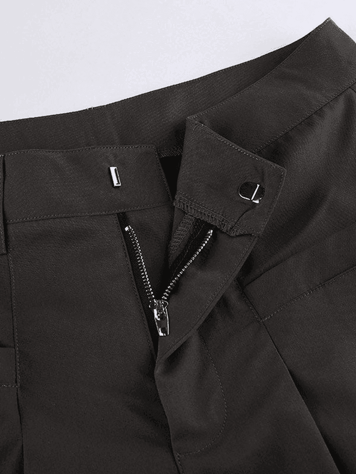 Description: Shaped to a straight-leg silhouette. these on-trend y2k pants featured pleated seam design. with long straps and functional pockets styling. complete with zipping fly & hook fastening at the front.