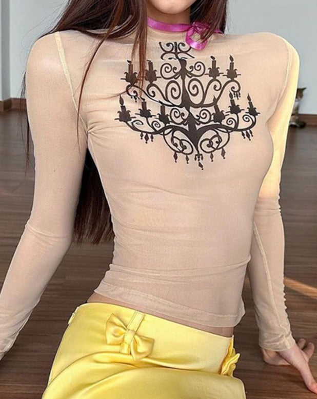 Details: Long-sleeve top with front graphical design