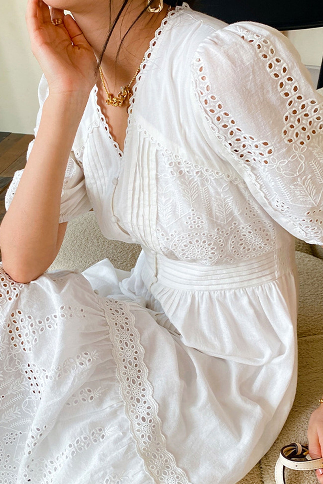Decrease quantity for White Emroidered V-neck Maxi Dress