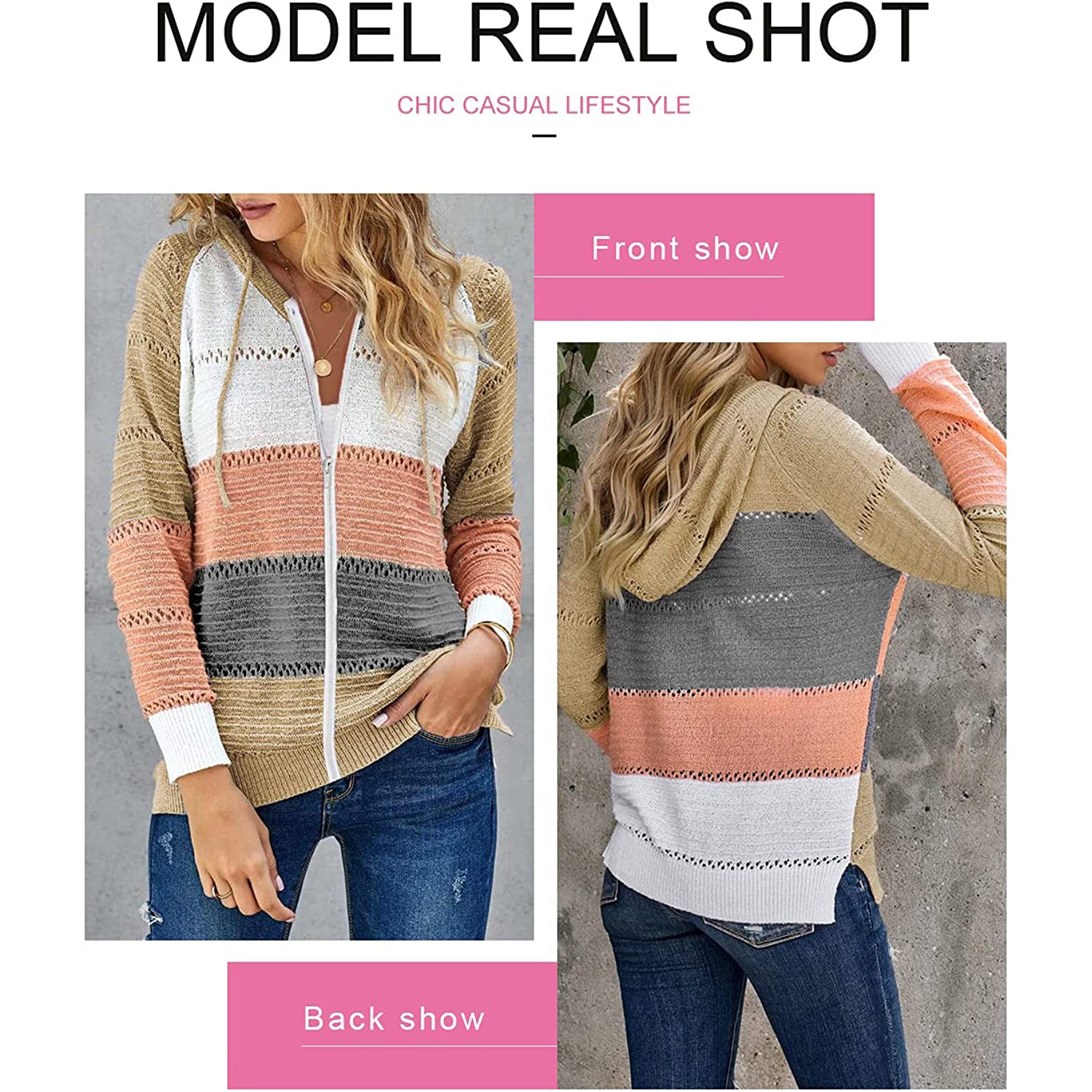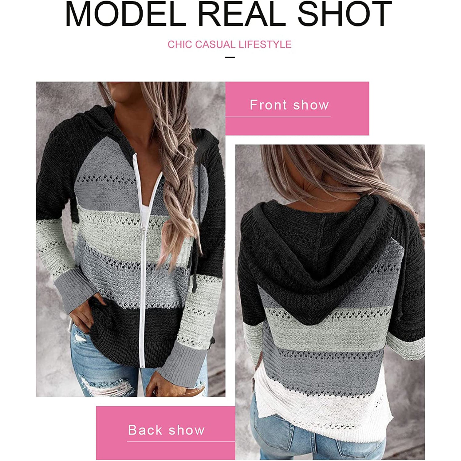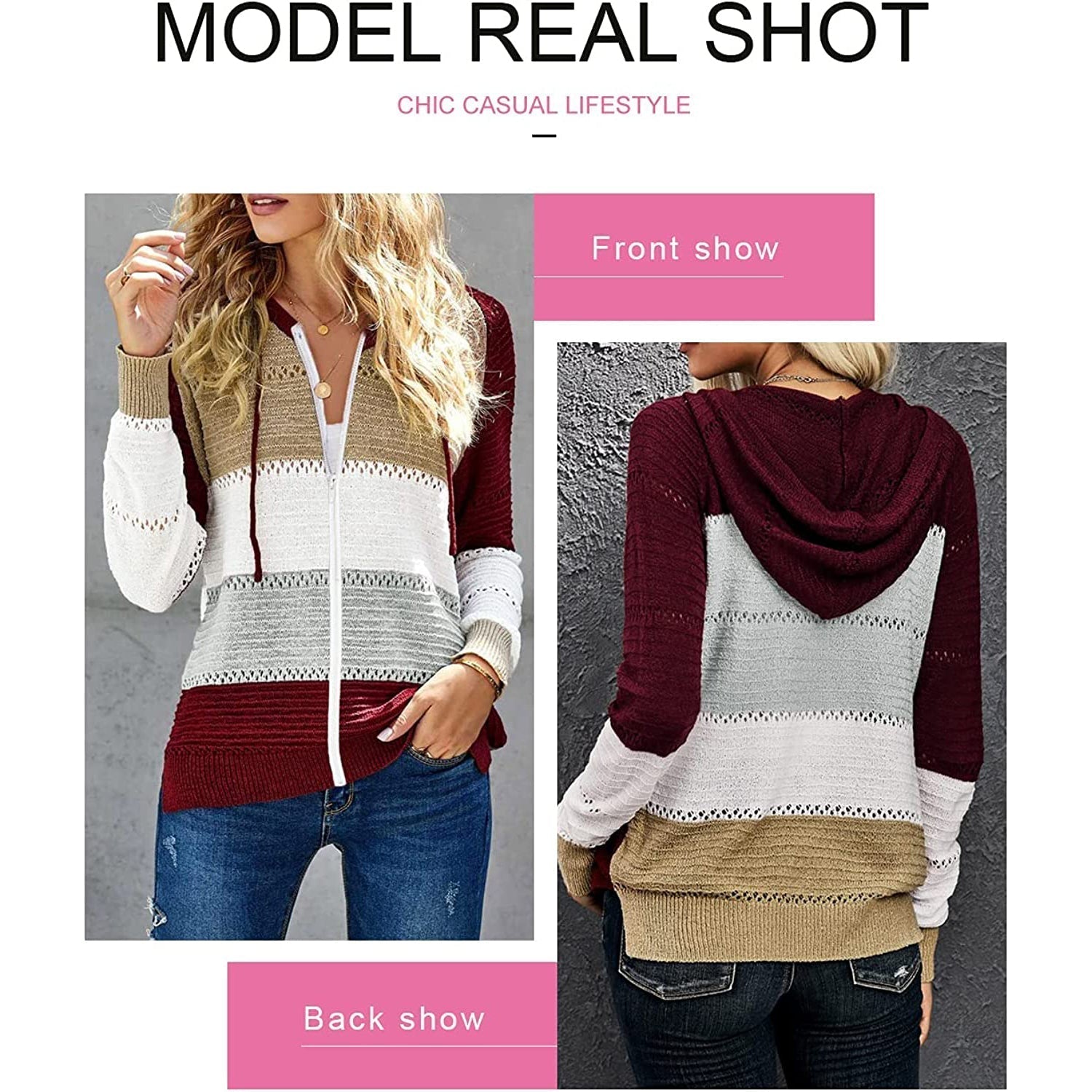 - Comfy and Casual Hoodies Sweatshirts. Long Sleeve. Knitted Farbic. Striped Color Block. Fall sweaters for women to Wear with Leggings. Jeans.