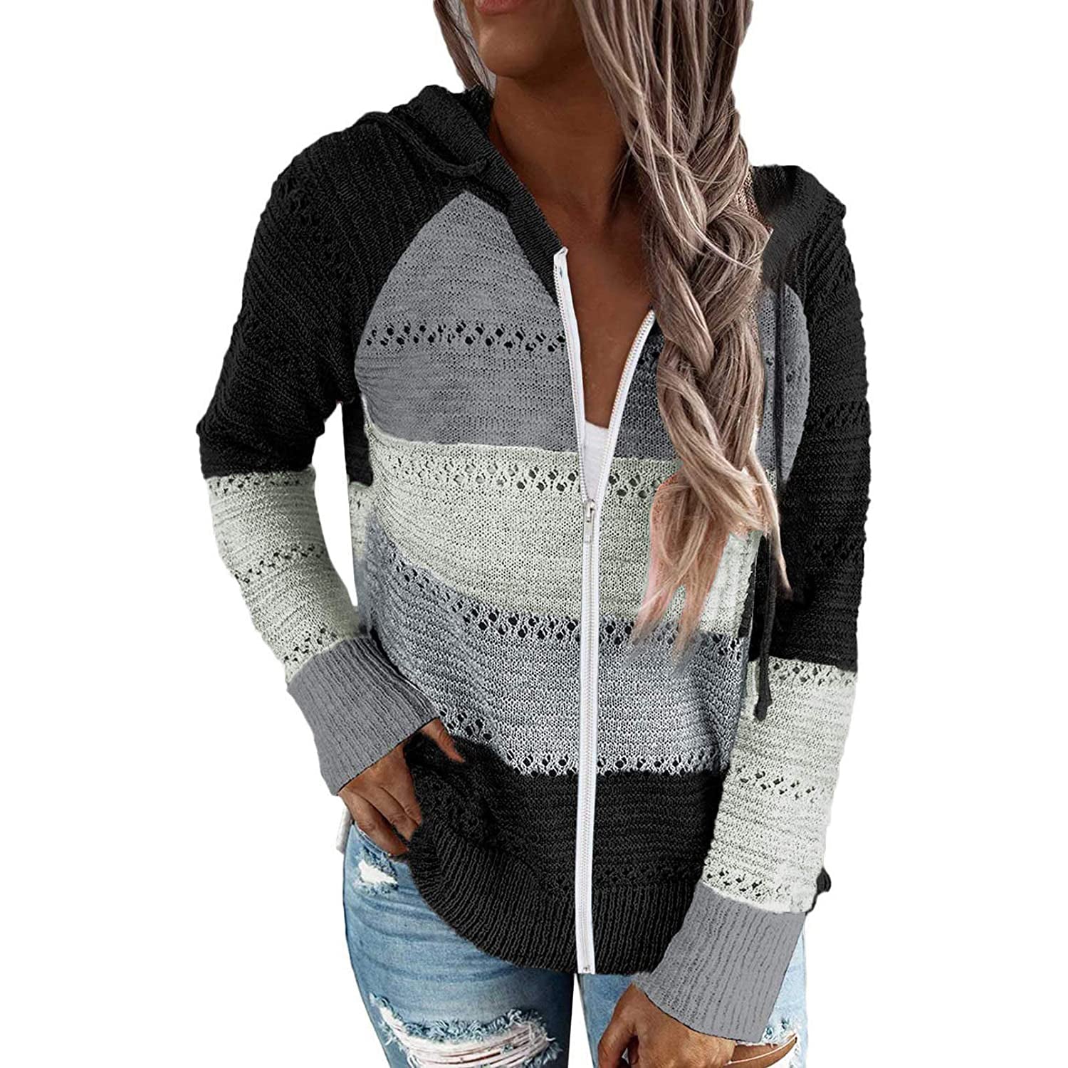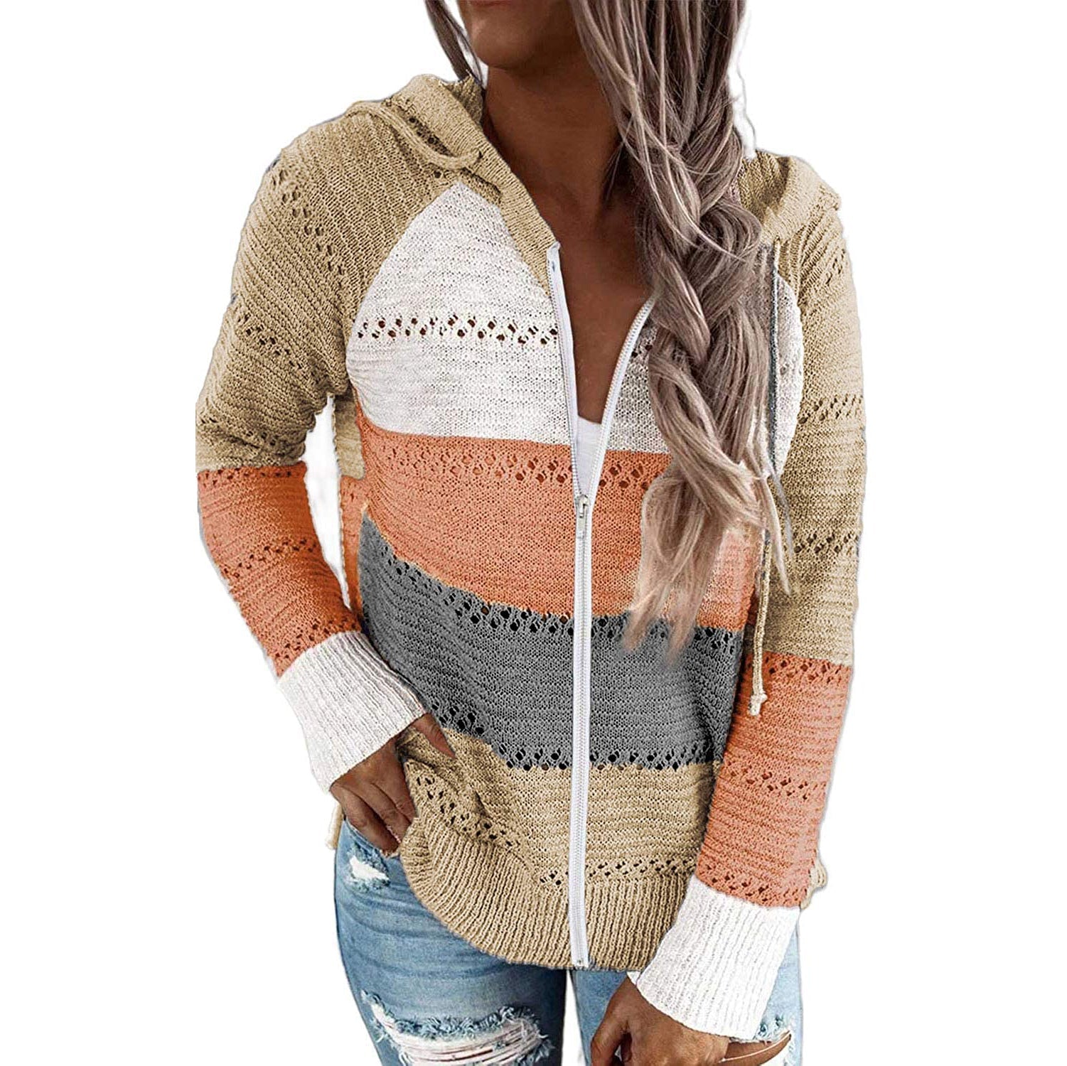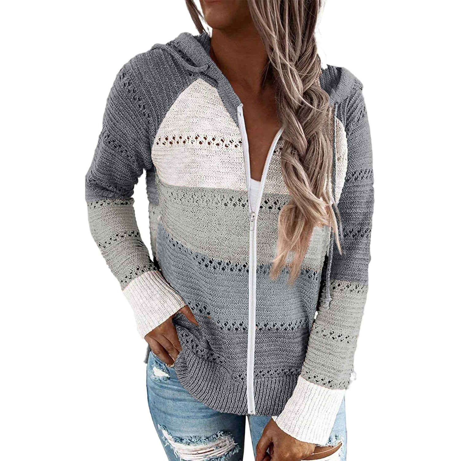 - Comfy and Casual Hoodies Sweatshirts. Long Sleeve. Knitted Farbic. Striped Color Block. Fall sweaters for women to Wear with Leggings. Jeans.