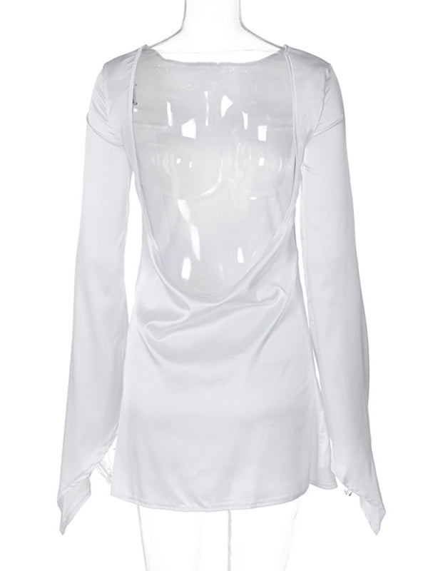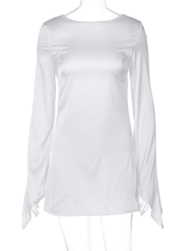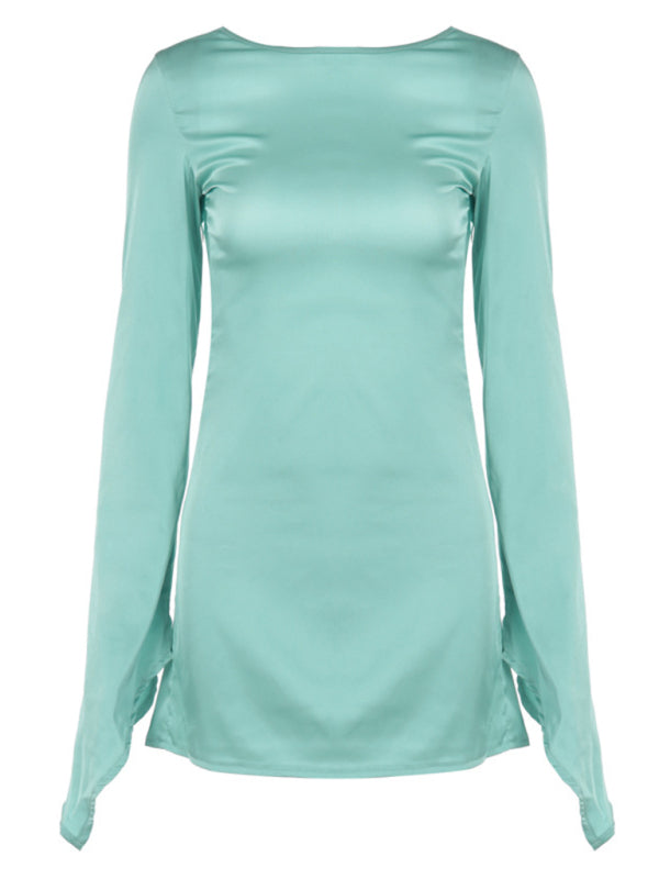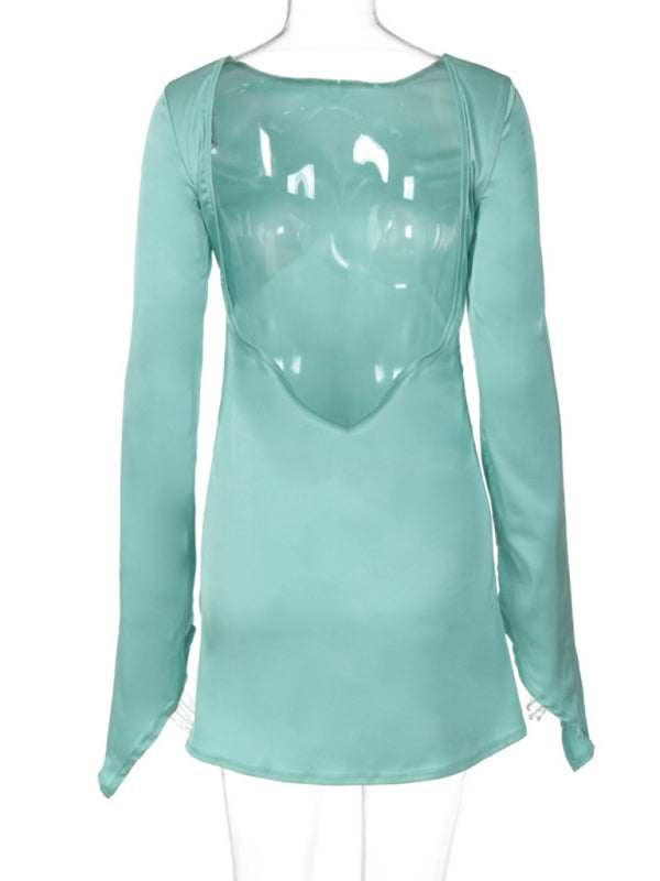Women's new sexy hottie style backless long-sleeved butt-covering dress is suitable for a variety of scenes. The simple design makes the boring season colorful and interesting. A variety of matching options make you confident and beautiful. Please use the sizing guide shown in our images when purchasing. Please read each element in the size guide carefully before choosing a size. Sizes are measured manually. and an error of 1-3cm is normal.