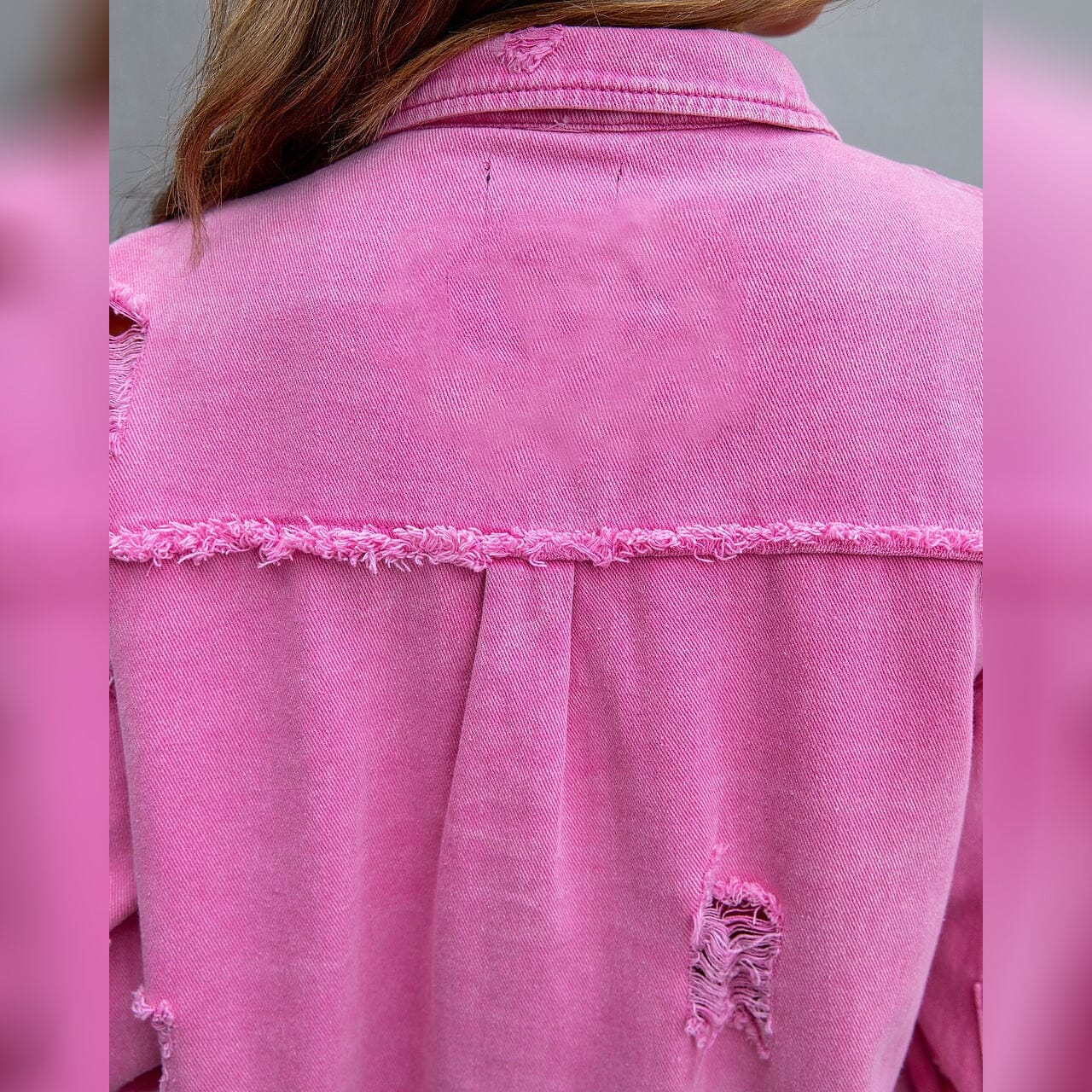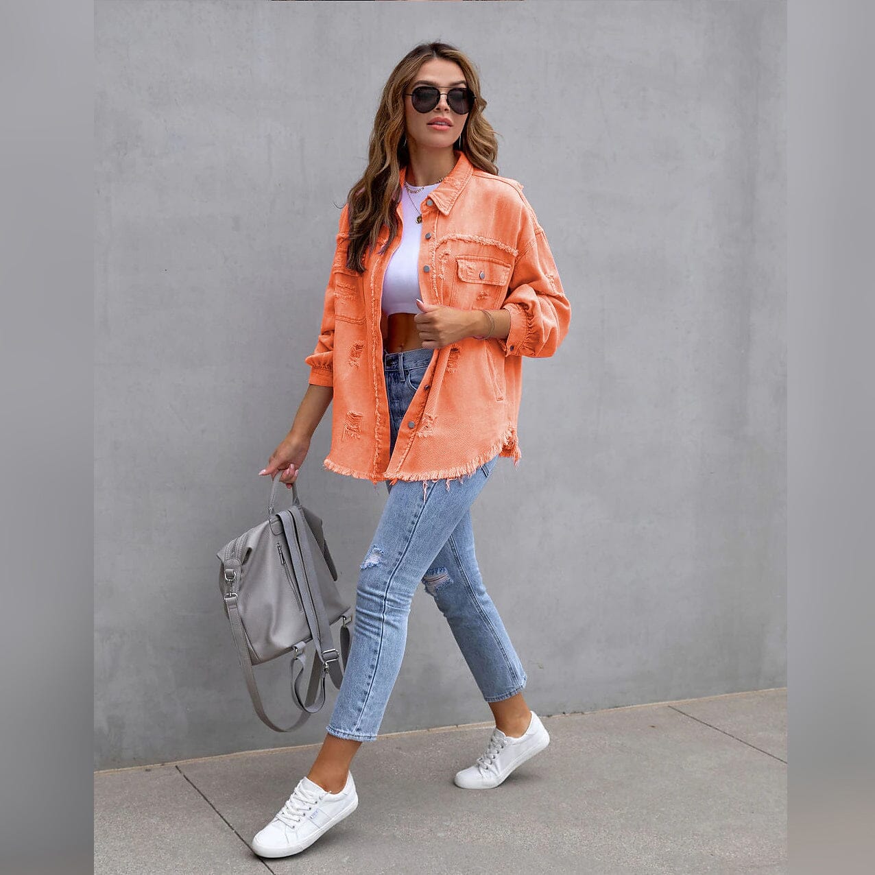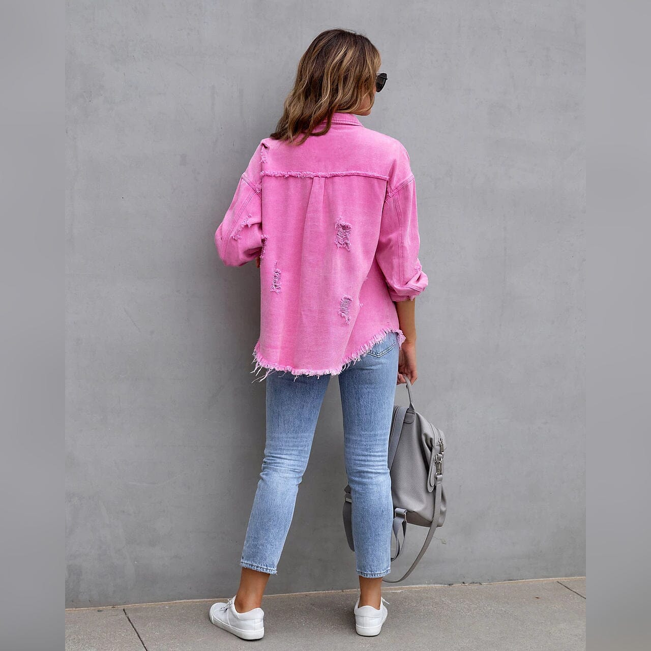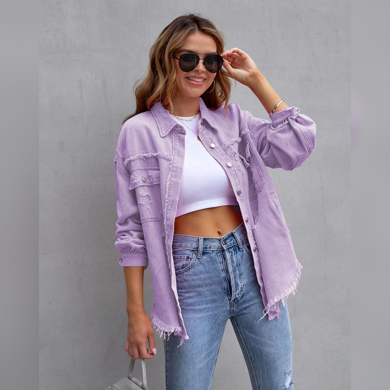 Women's Shacket Plain Button Pocket Long Sleeve Casual Daily Basic Shirt Collar Regular Denim.